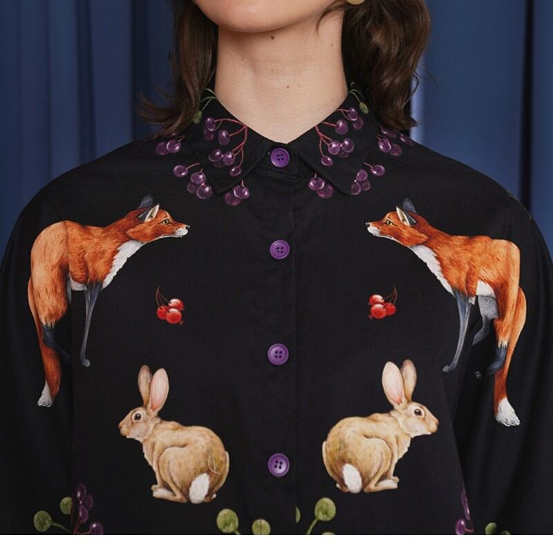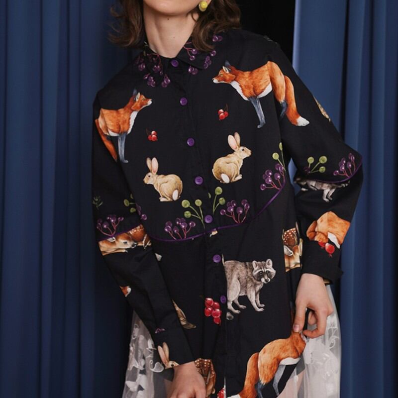 まるでアートのような夢に出てきそうな美しい動物たちがプリントされたブラウス✨