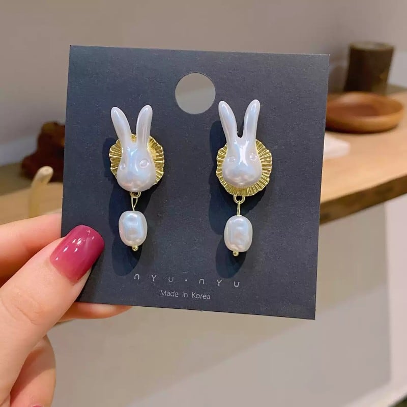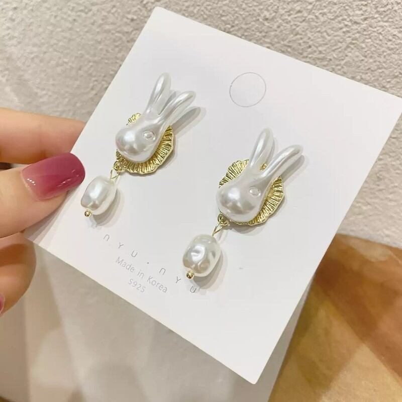 wonderland retro white rabbit earrings & ear clips (ピアス & イヤリング) 1007