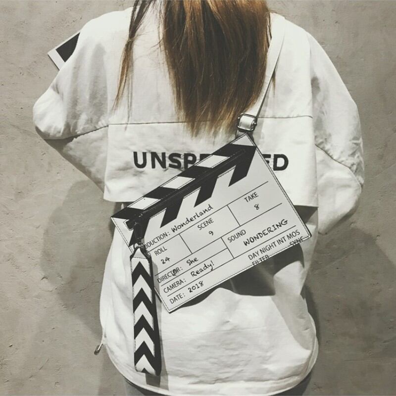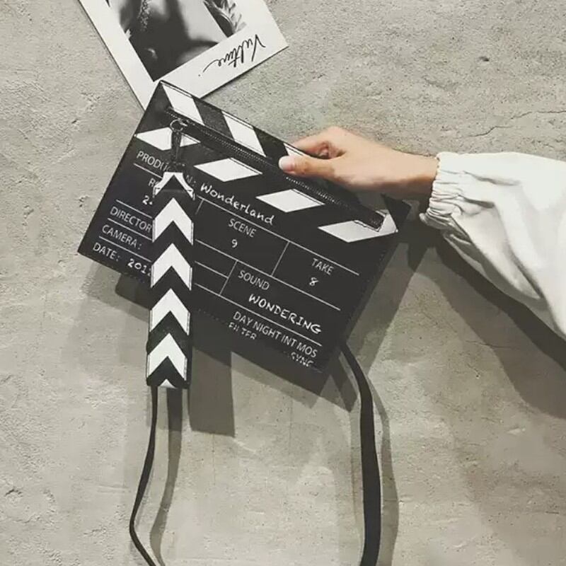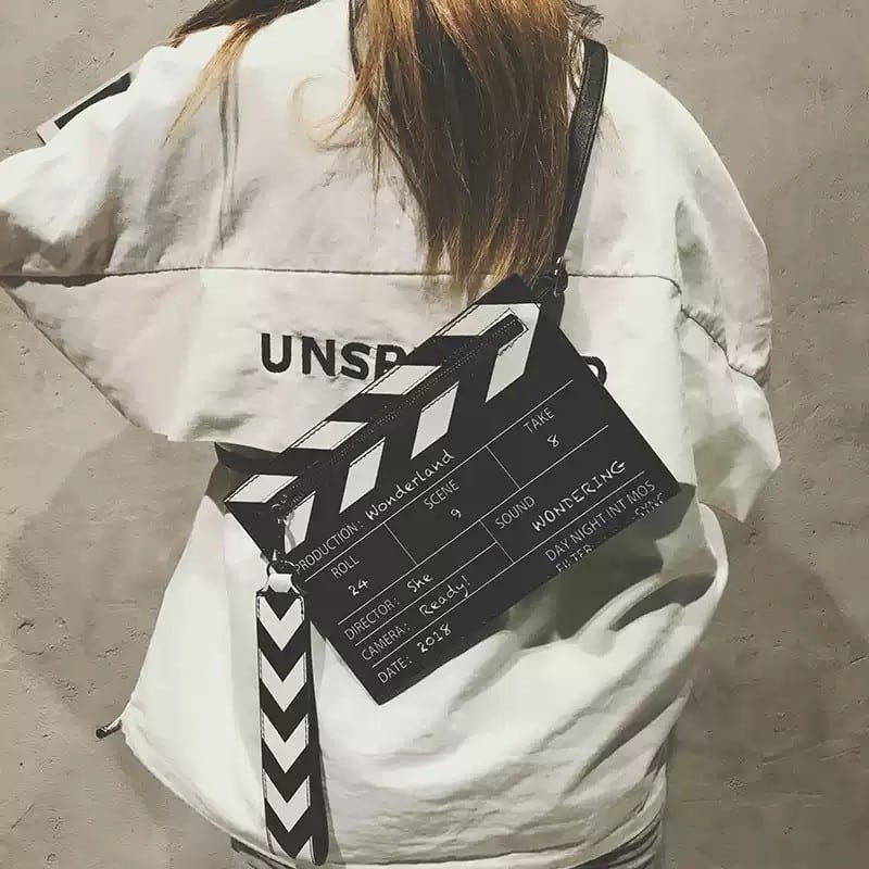 注目されること間違いなし✨映画のカチンコデザインのユニークで可愛いショルダーバッグ✨