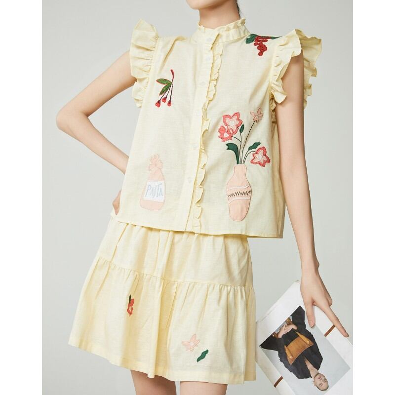 レトロな花柄刺繍が施されたブラウス✨ぜひ同柄のスカートと一緒に♡