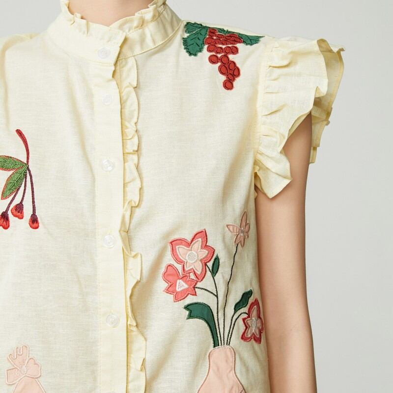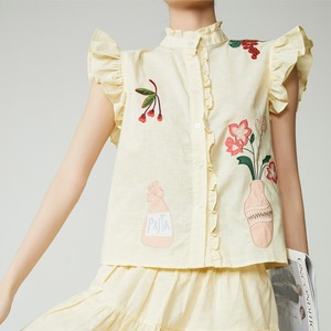 girly retro flower embroidered shirt 1019