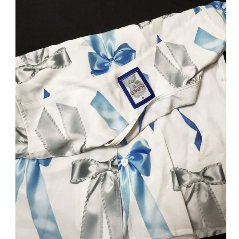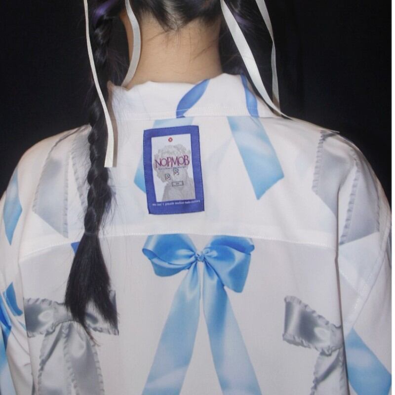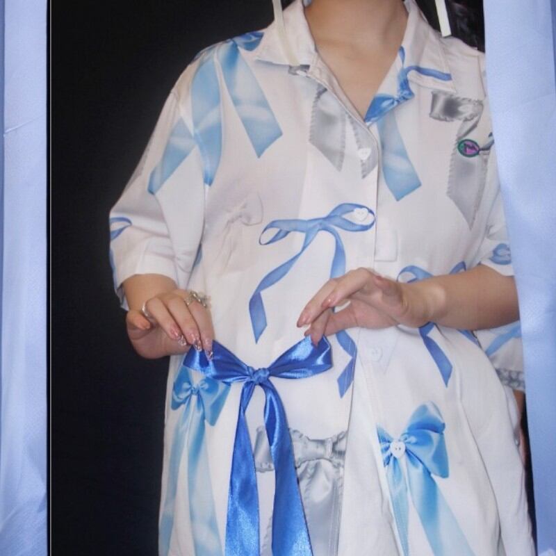 キュンとするほど可愛いブルーリボン柄の白ブラウス✨