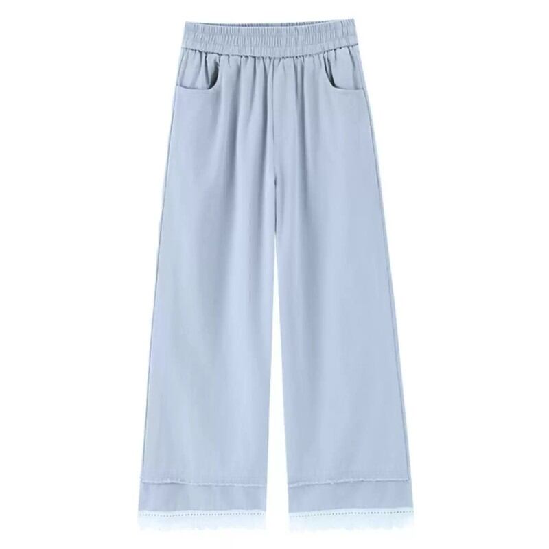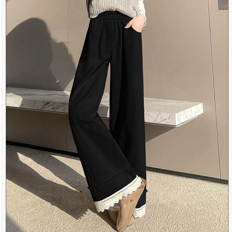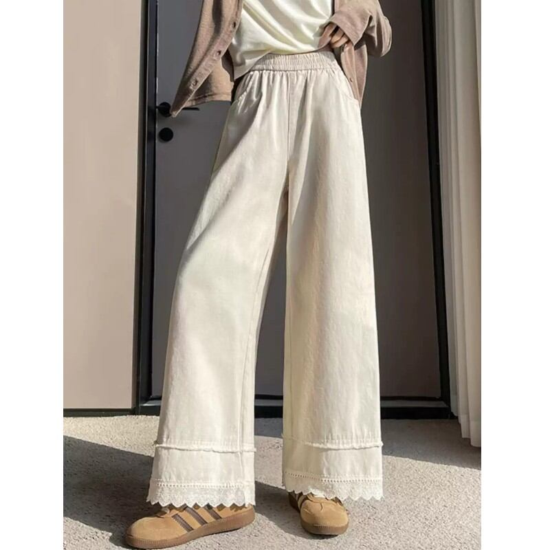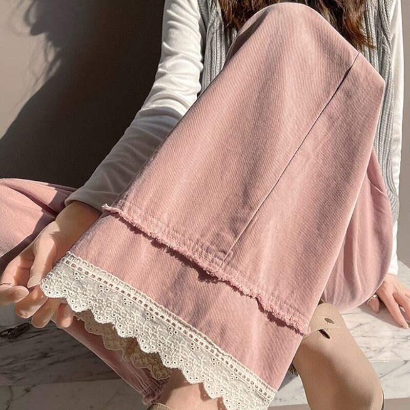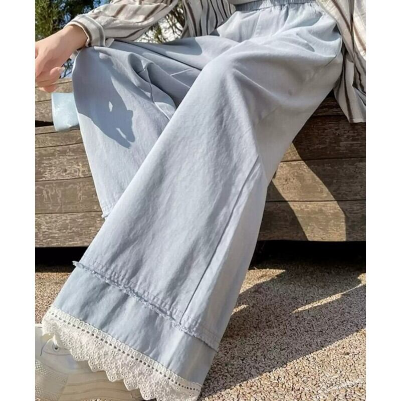 レースの裾がレトロ可愛い♡ウォッシュドコットン風のおしゃれなワイドパンツ✨
