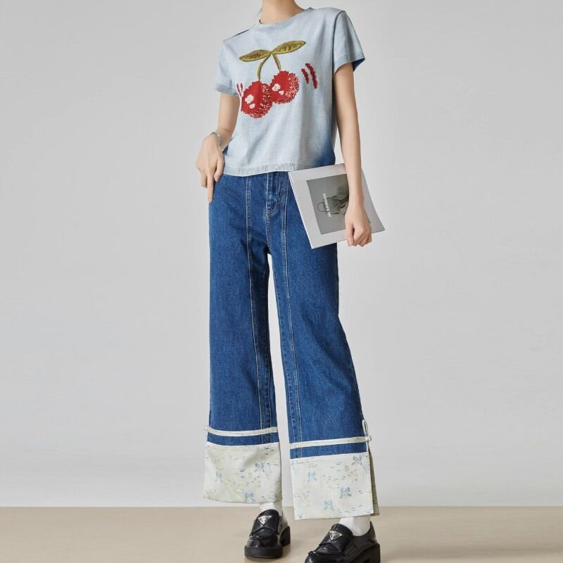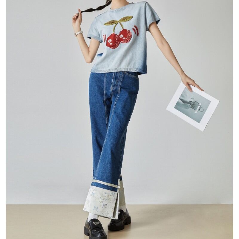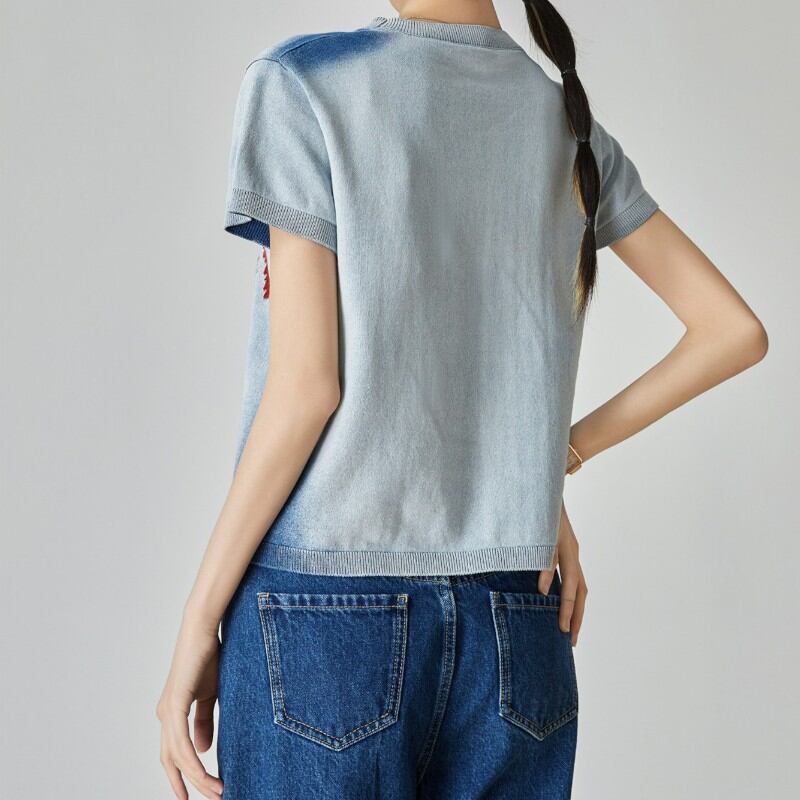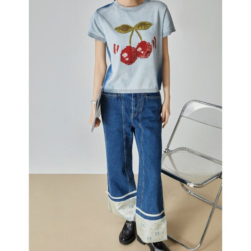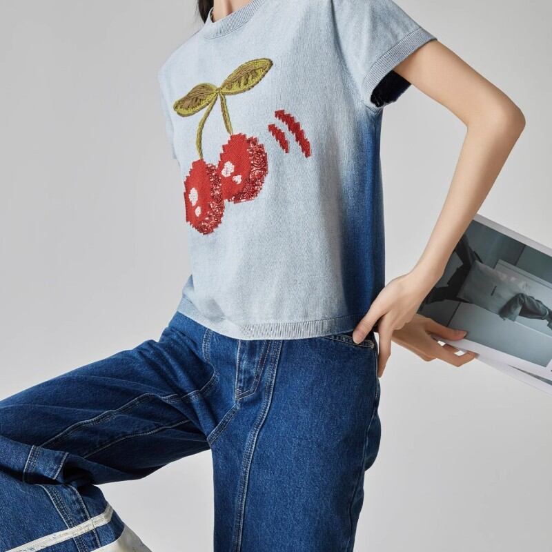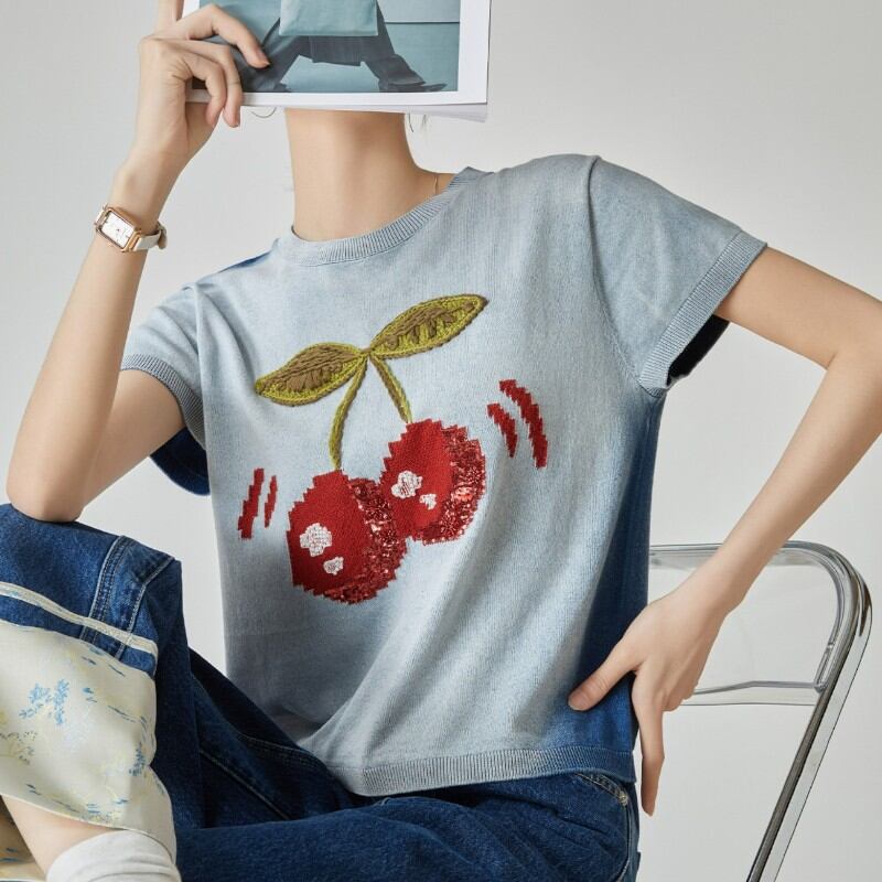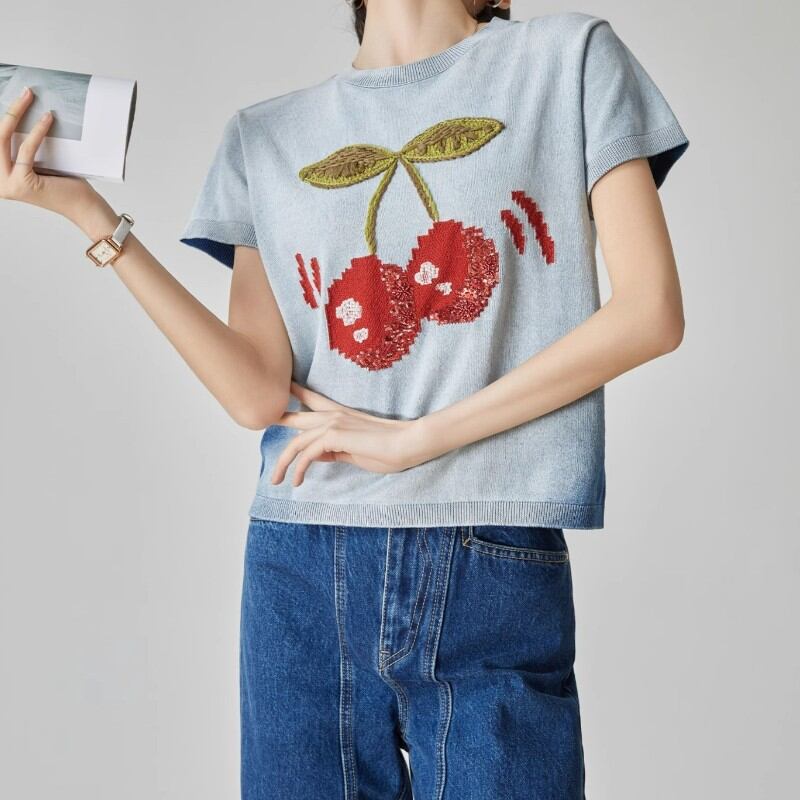 girly cute cherry embroidered summer knit tops 1036