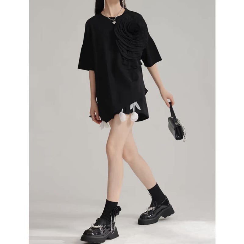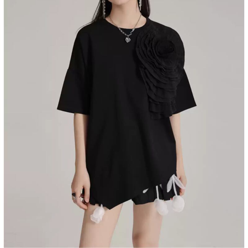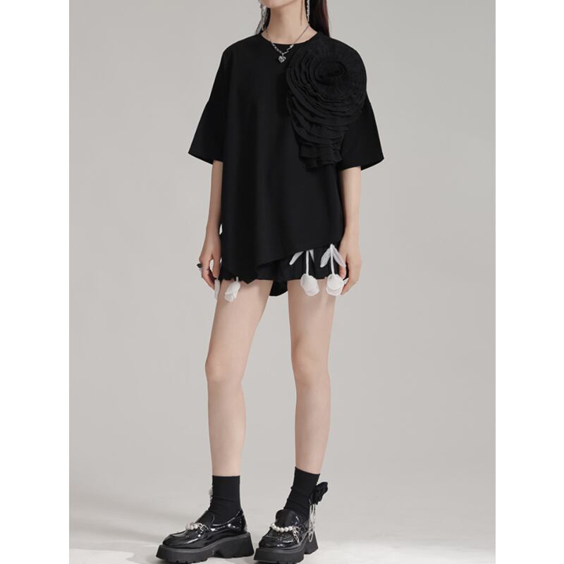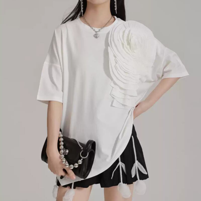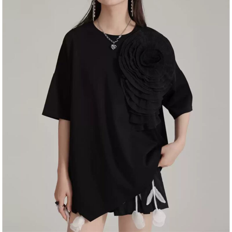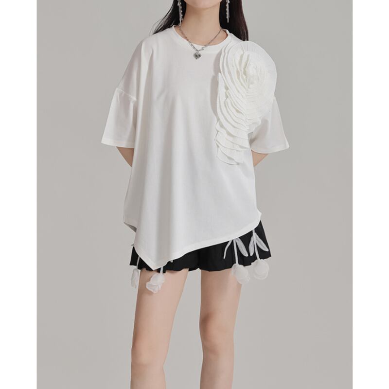 存在感抜群♪大きな大きな花がついたTシャツトップス✨