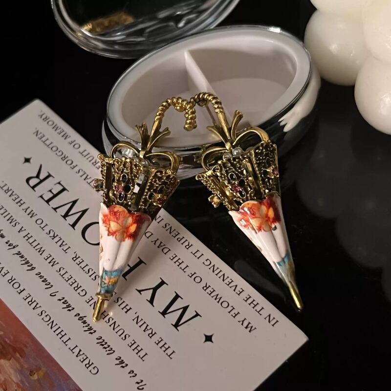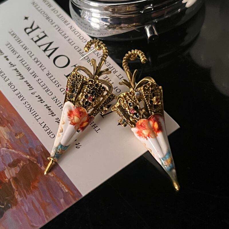 レトロアンティークな雰囲気が素敵な傘のピアス✨