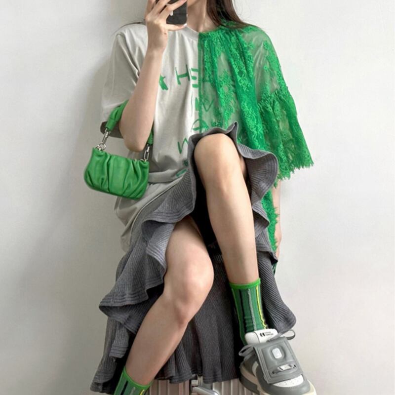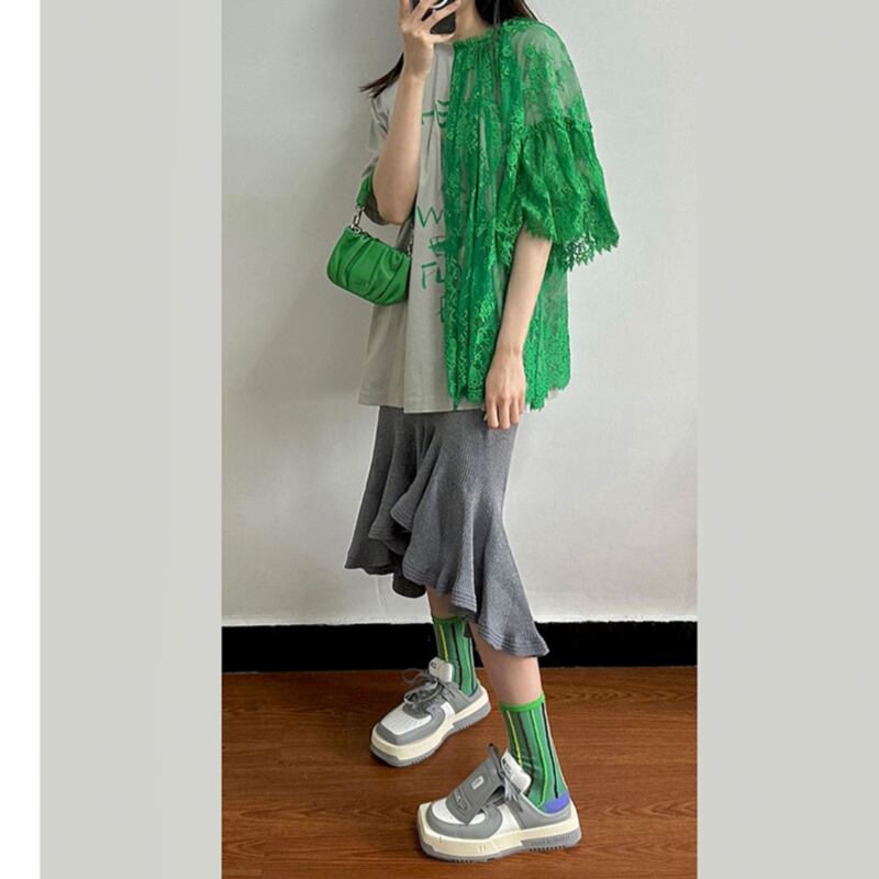 girly retro green flower lace shirt and fishtail skirt set up 0087