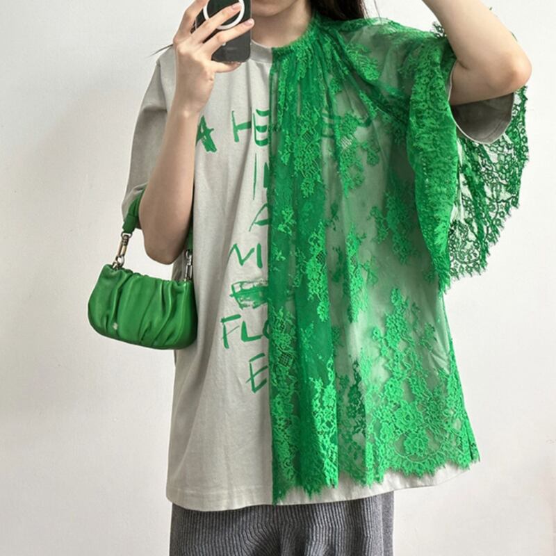 レトロな花柄のレースとアシンメトリーなデザインがおしゃれなシャツとガーリーなフィッシュテイルスカートのセットアップ✨