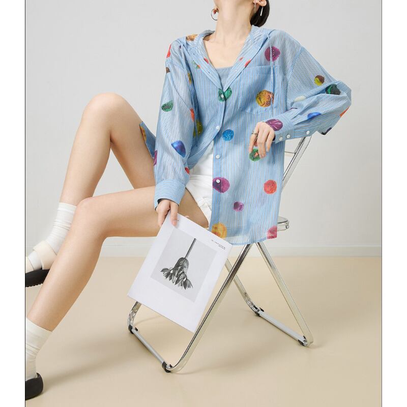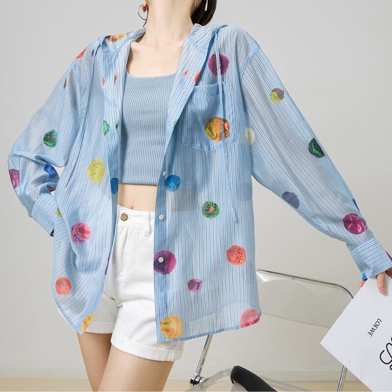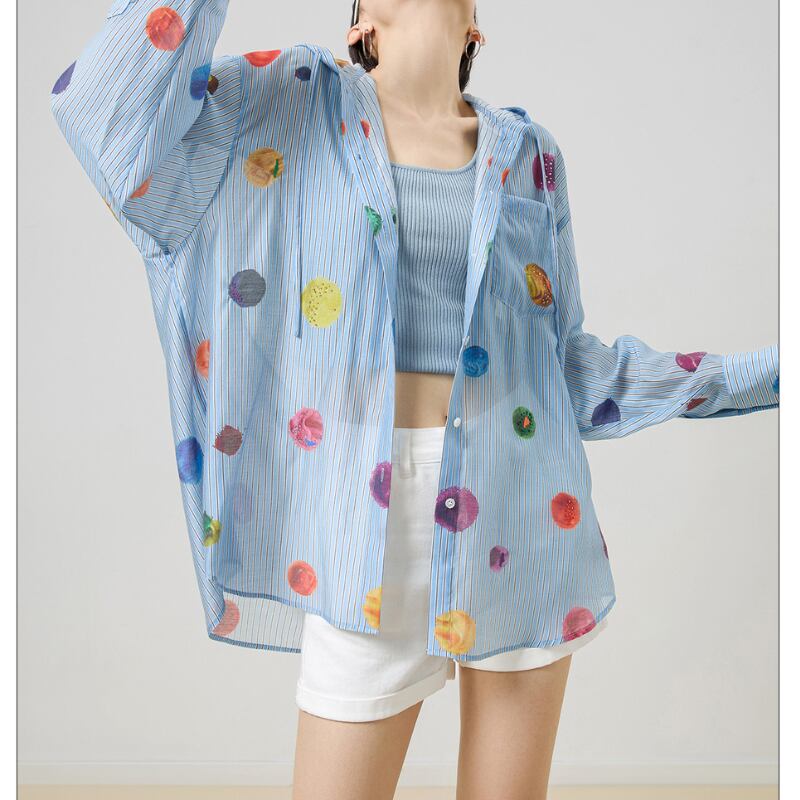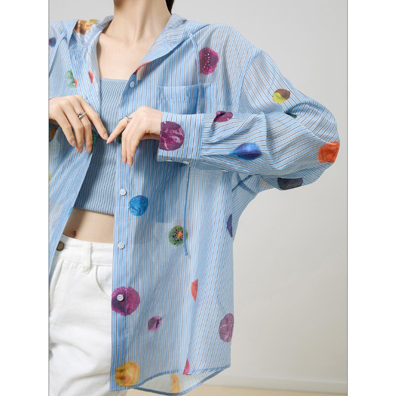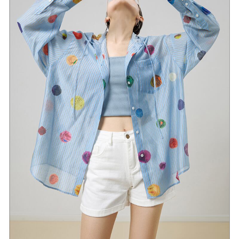 カラフルなドット柄が素敵♪フード付きシャツ✨