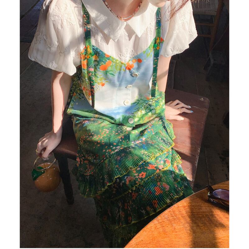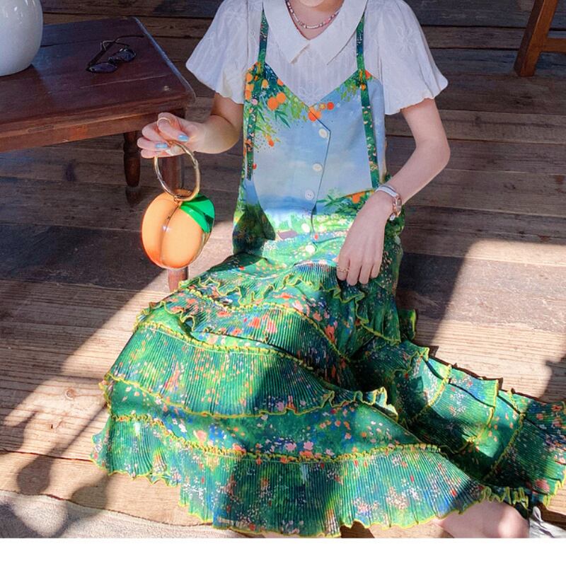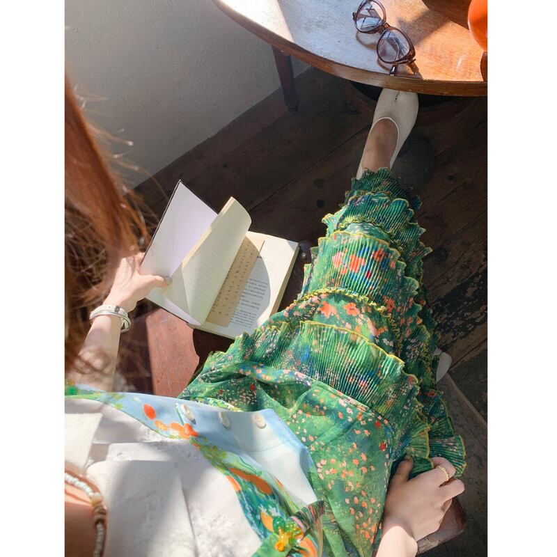 まるで夢に出てくるような緑と花のお庭が広がったワンピース✨