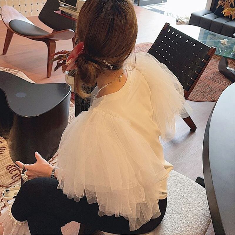 girly elegant puff sleeves lace shirt 0143