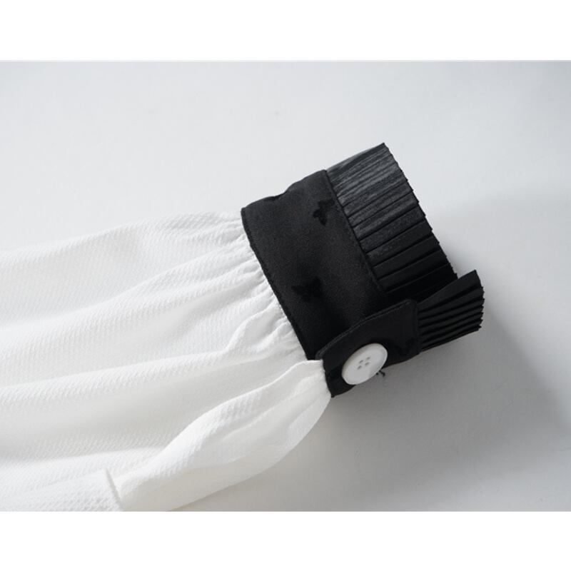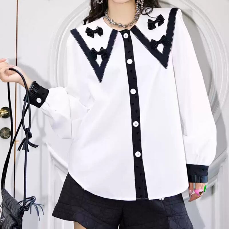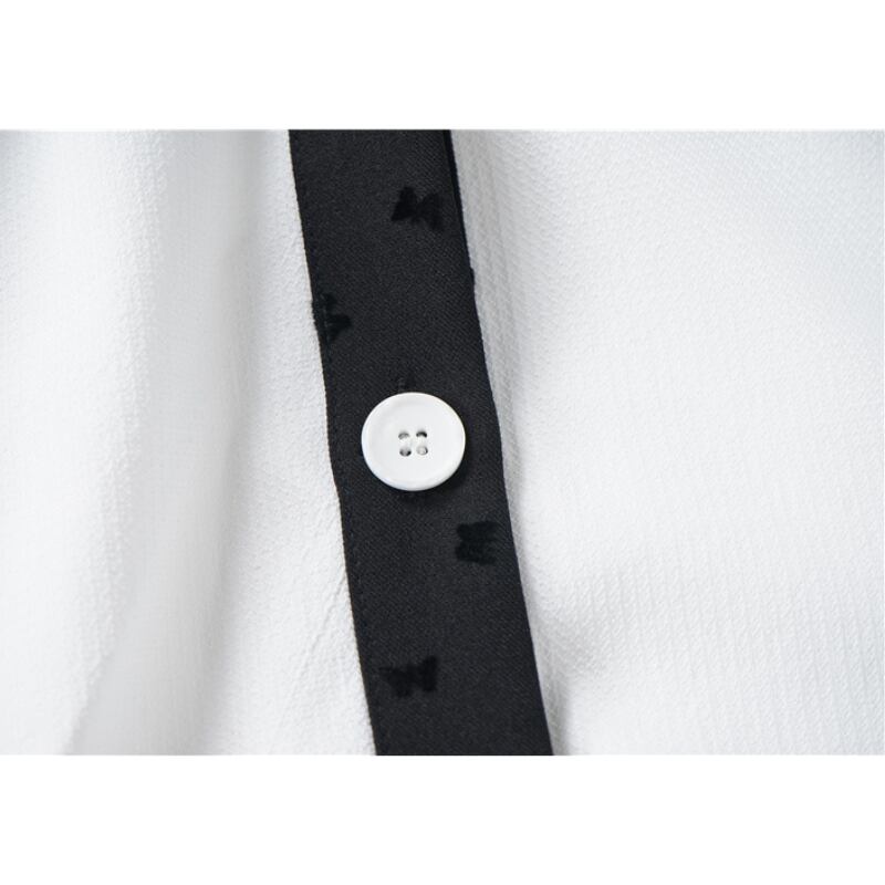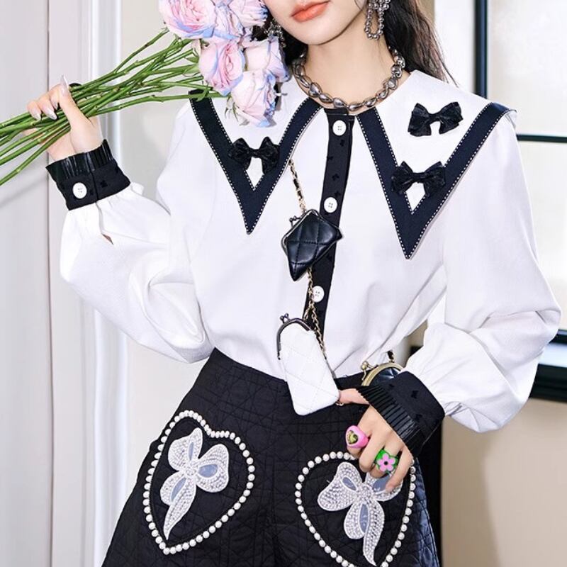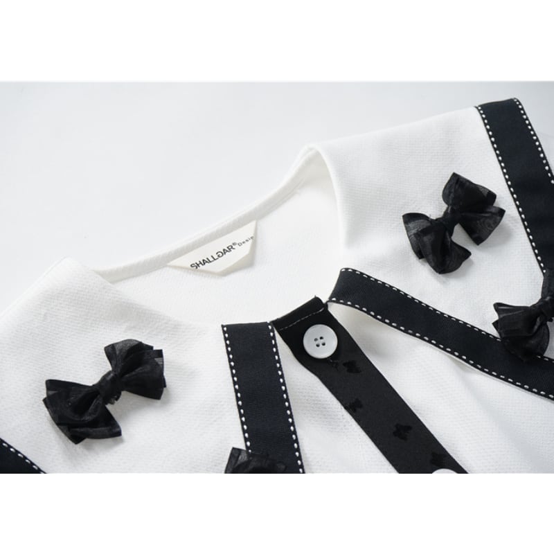 girly cute contrast color ribbon white shirt 1055
