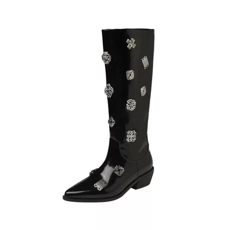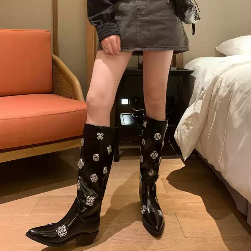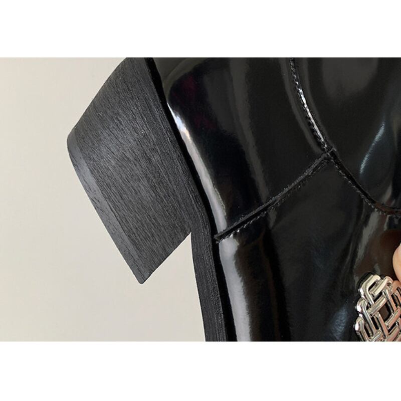 niche metal buckle black long boots 1047