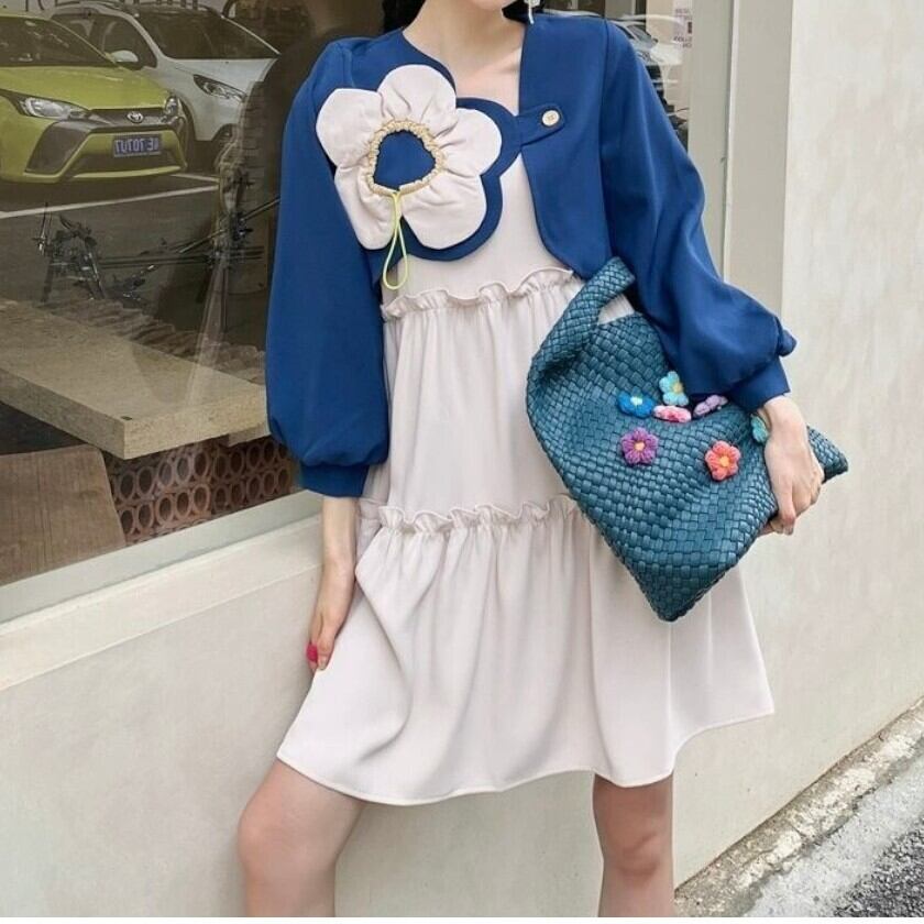 大きな花が可愛いアクセント♡パフスリーブトップス✨