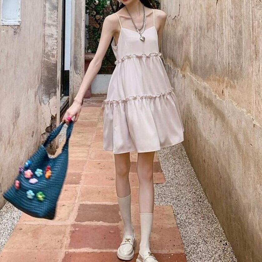 フリルとシルエットがキュートなキャミソールワンピース✨