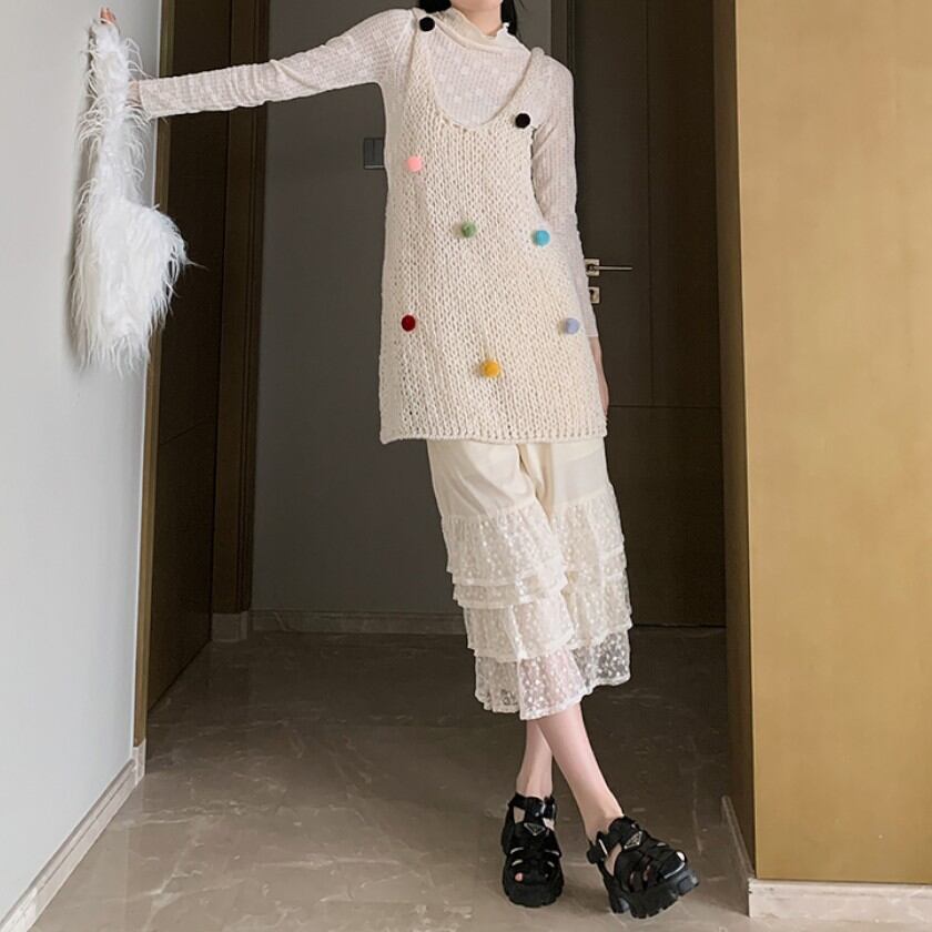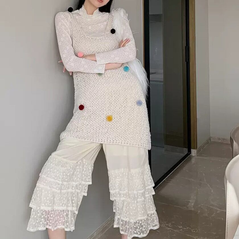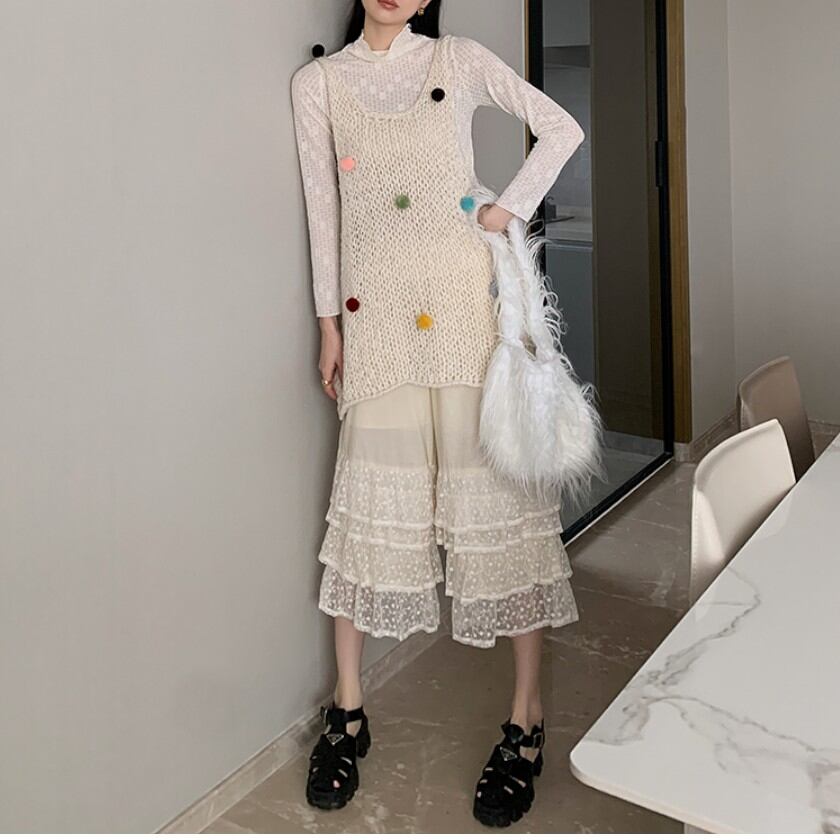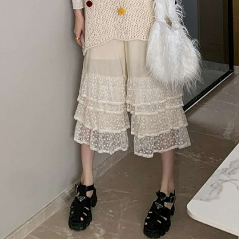 cute girly lace wide leg pants 0057