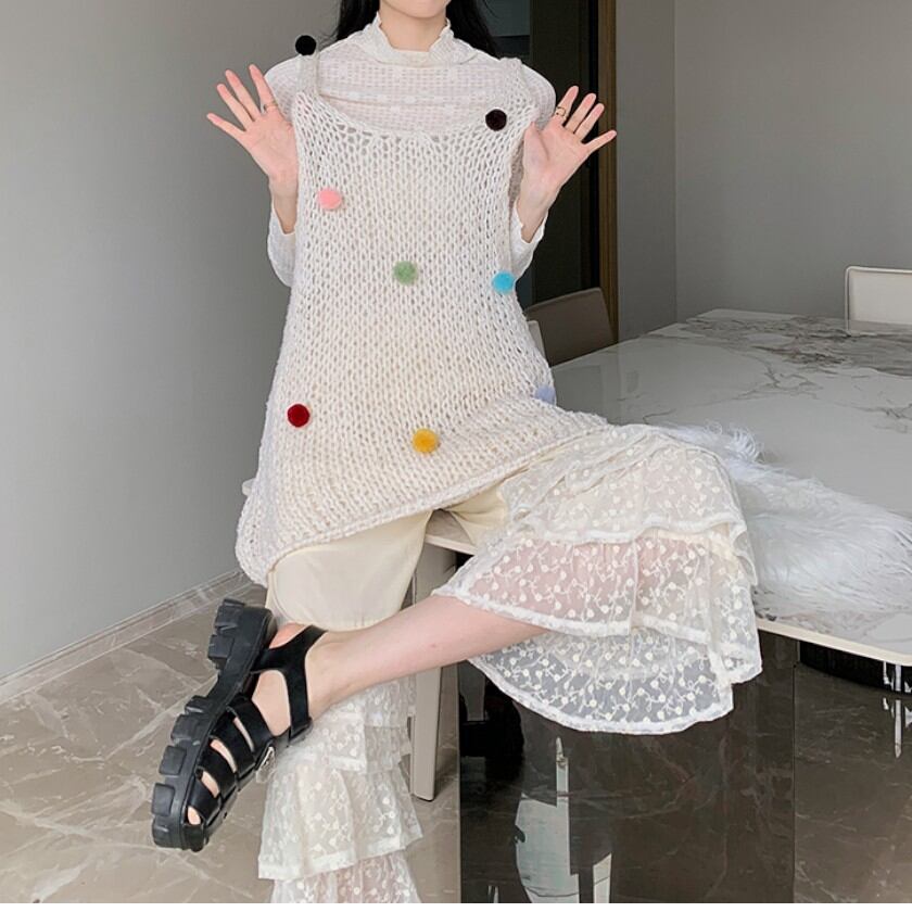 happy colorful ball knit one-piece 0055