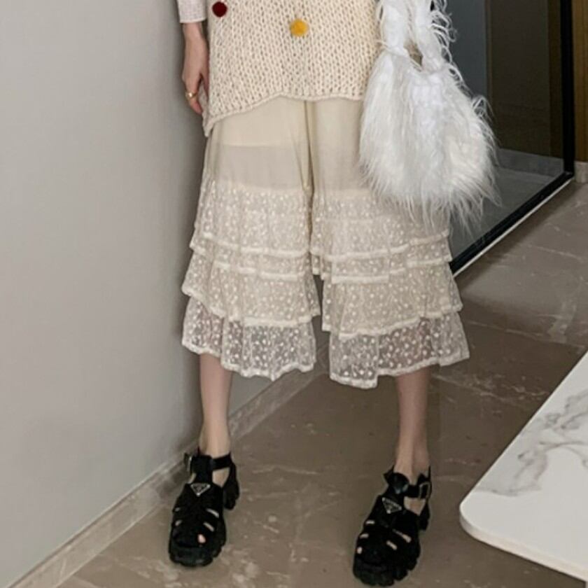 レースフリルが可愛くてたまらない♡ワイドパンツ✨