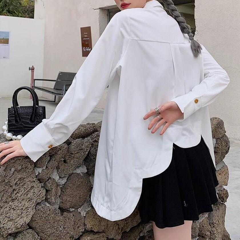 charming wave hem white shirt 0096