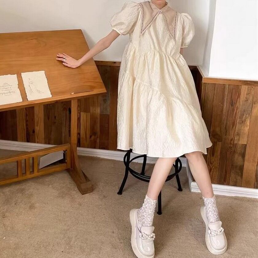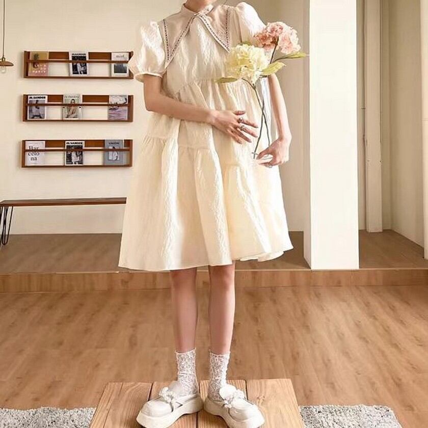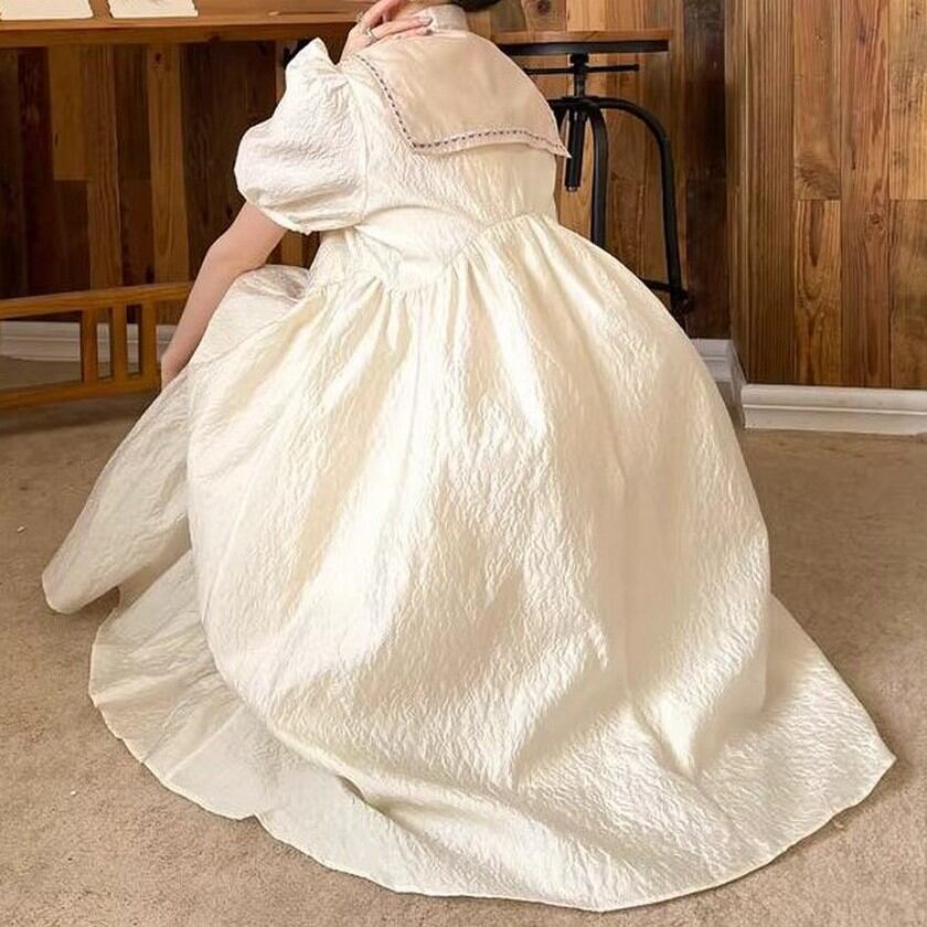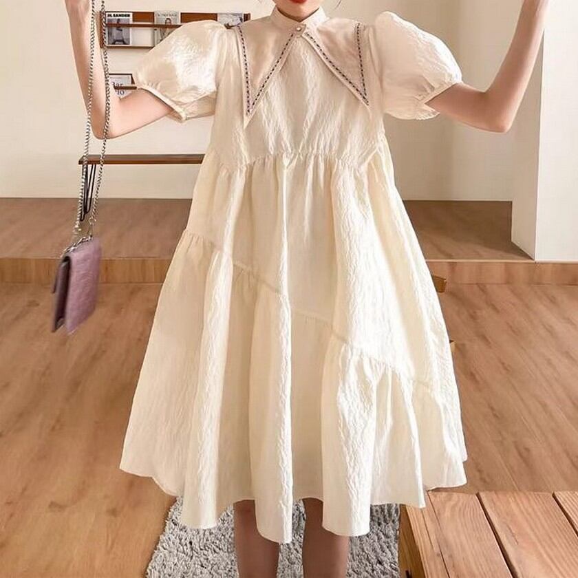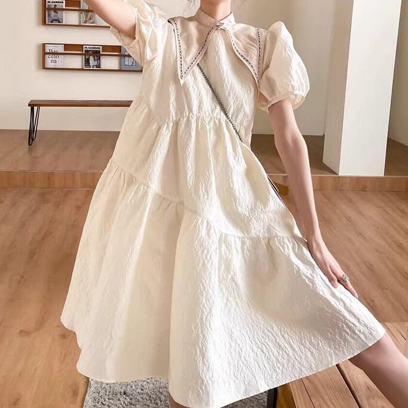 大きな襟とぷっくり袖が可愛い♡白ワンピース✨