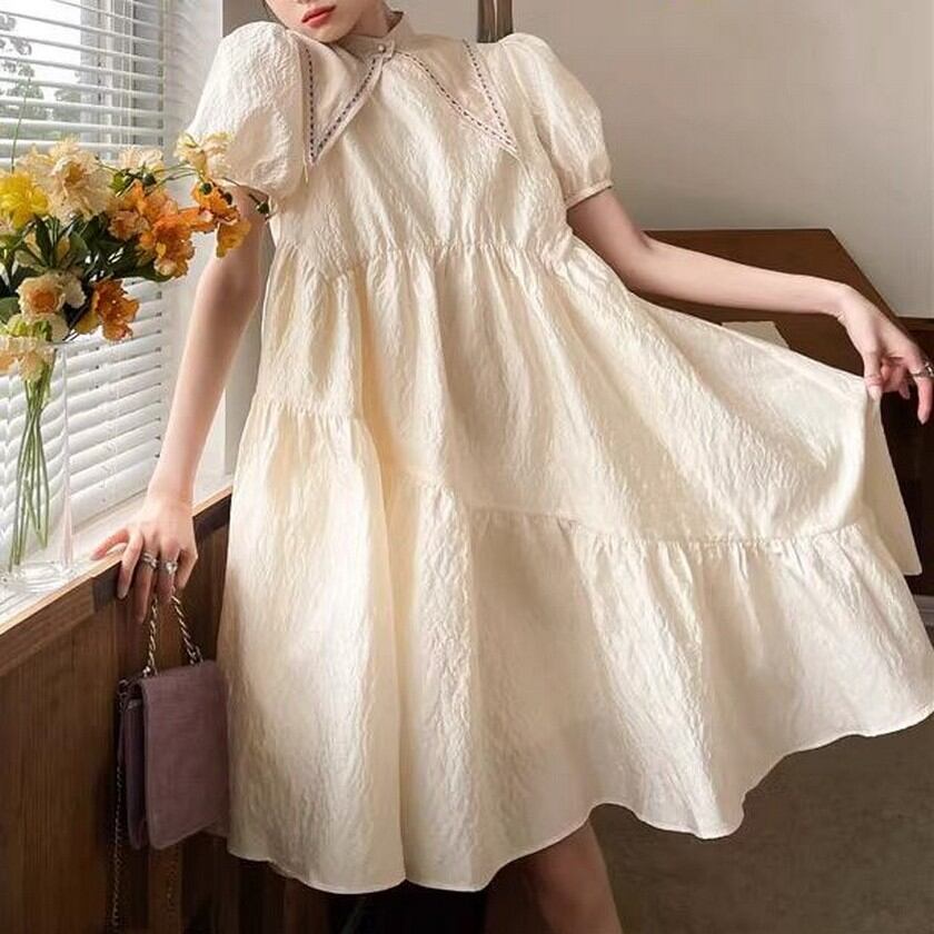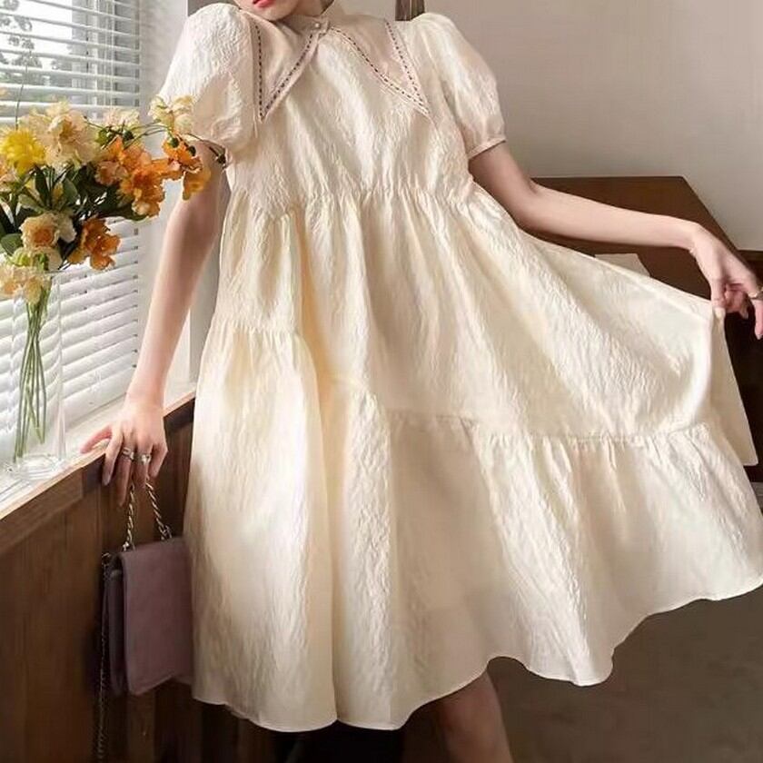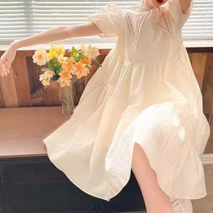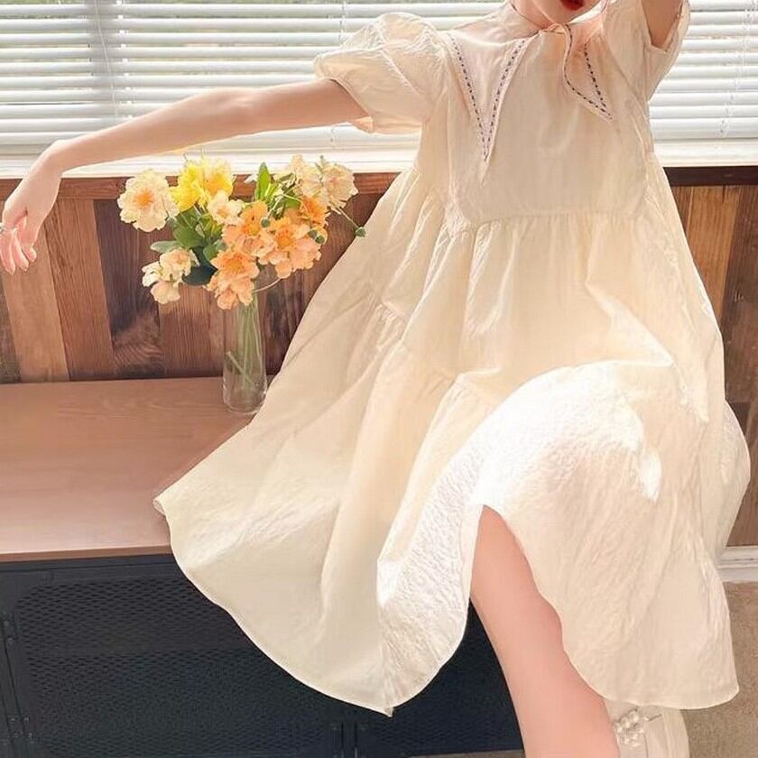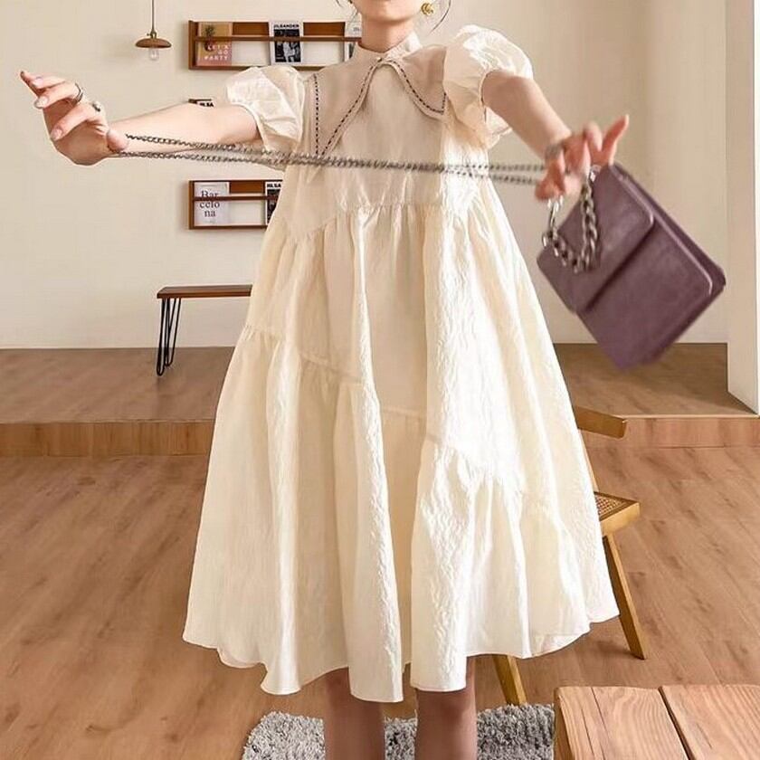 大きな襟とぷっくり袖が可愛い♡白ワンピース✨