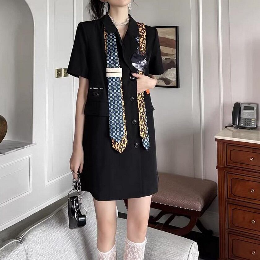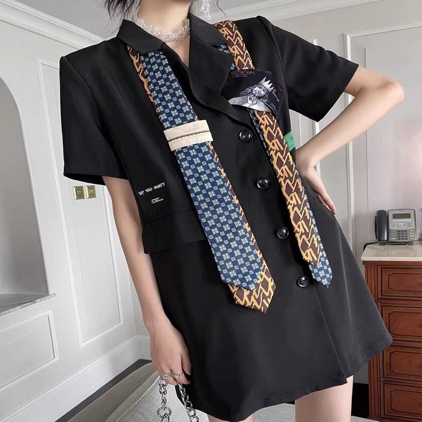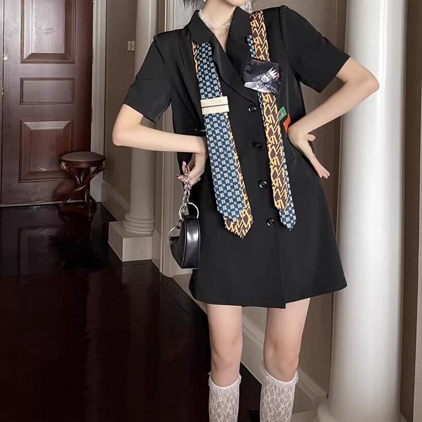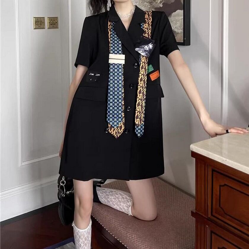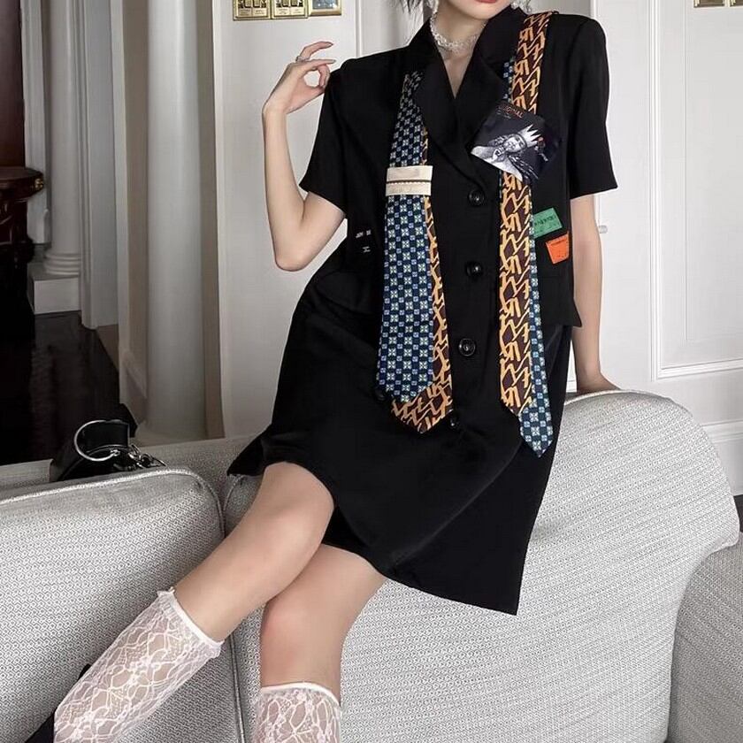 おしゃれなネクタイ風リボンがついたシャツワンピ✨