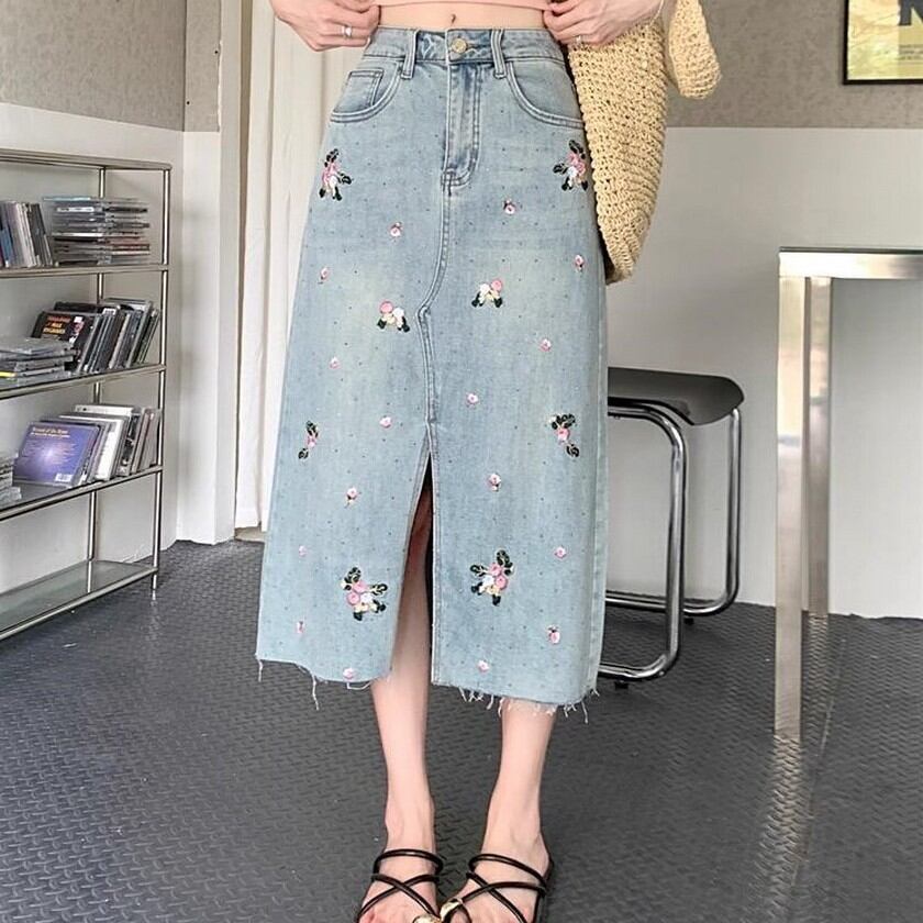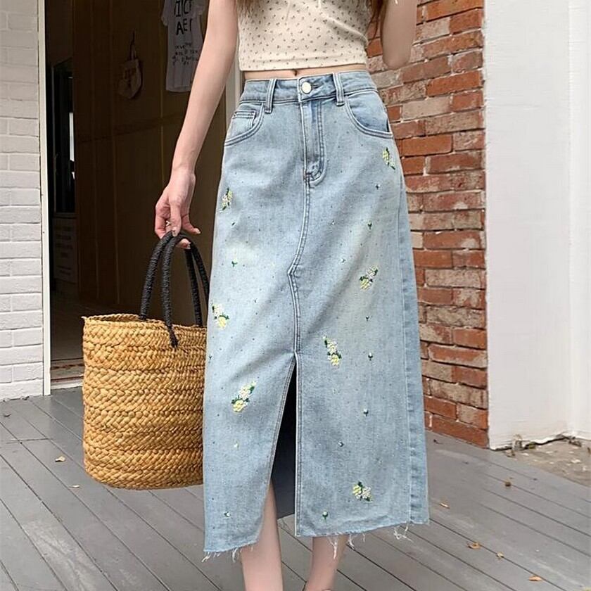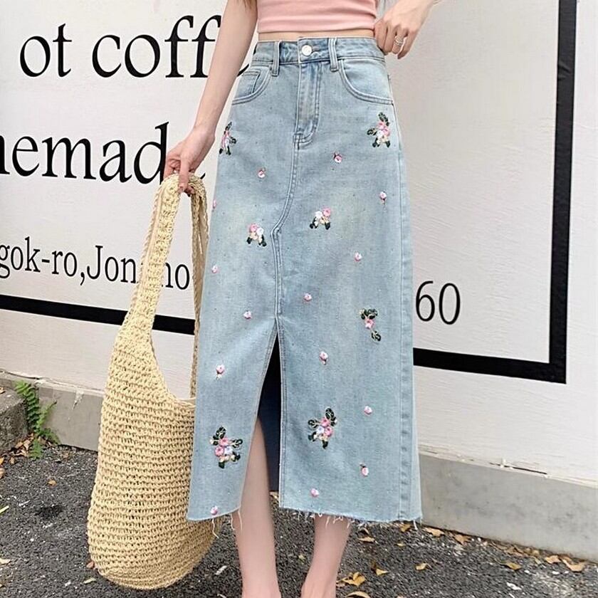 pretty flower embroidery denim skirt 【2color】0157