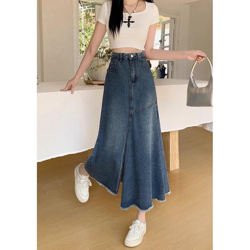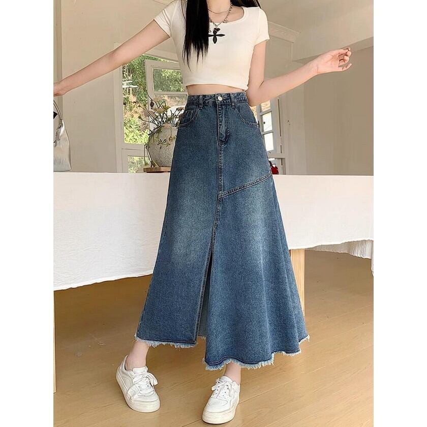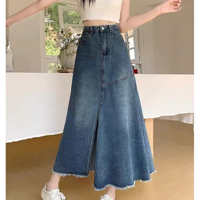 girly denim slit skirt 【2color】0151