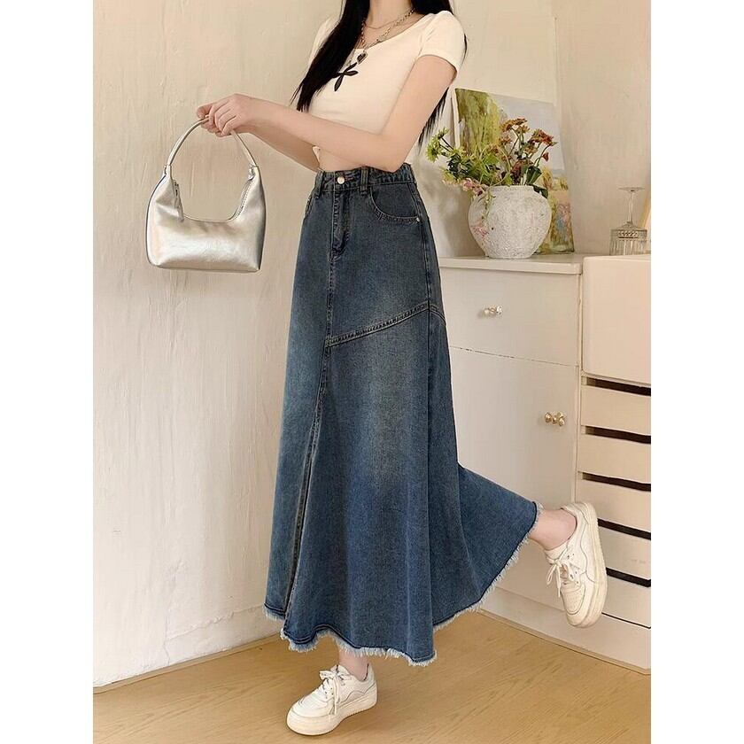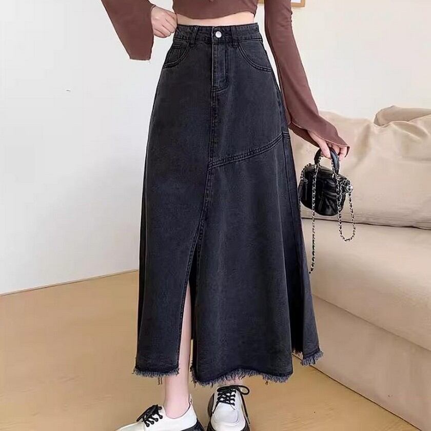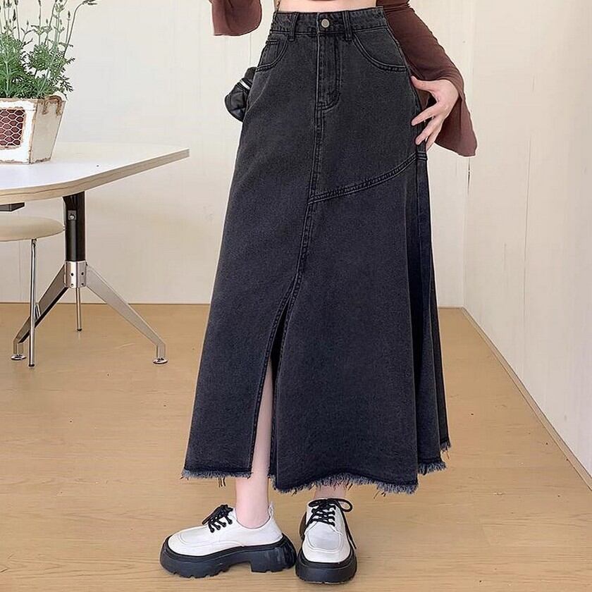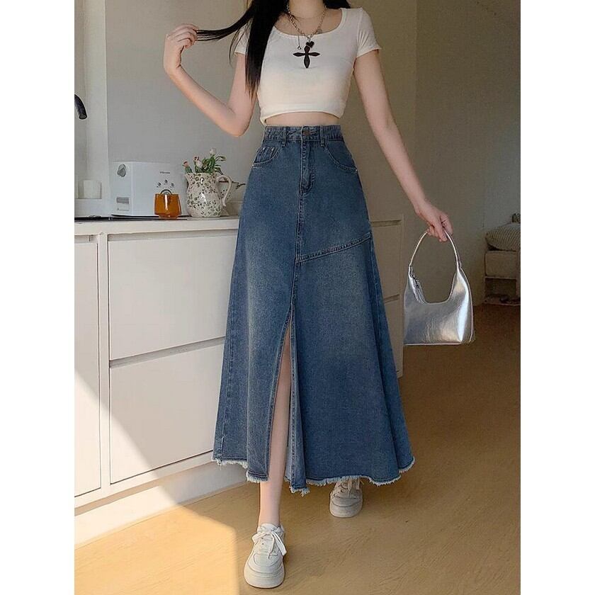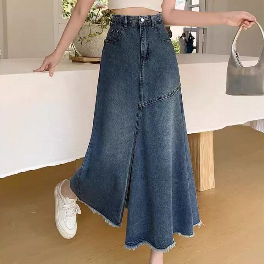 大人ガーリーコーデに合う着回し力抜群のスリット入りデニムスカート✨