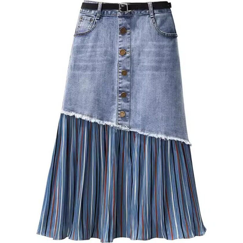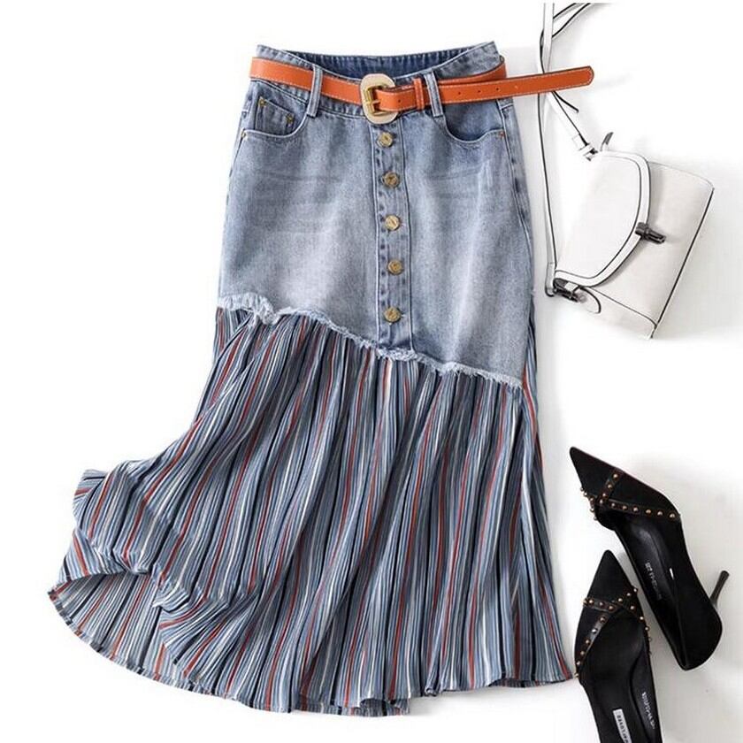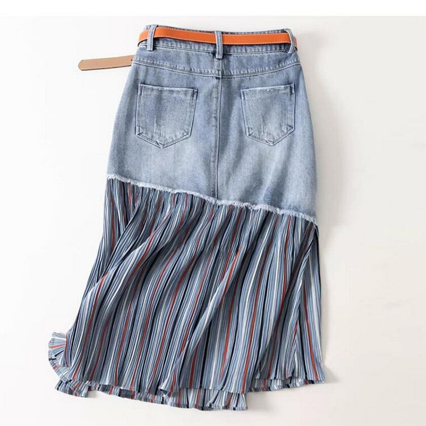 denim patchwork stripe skirt 0146