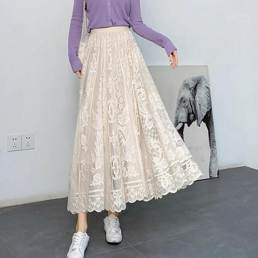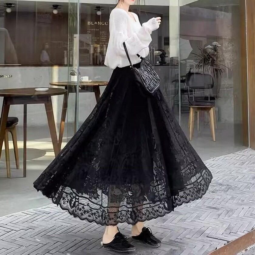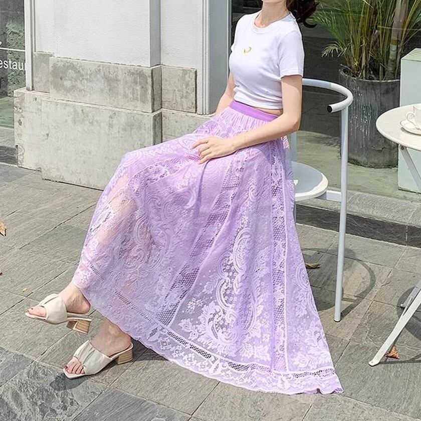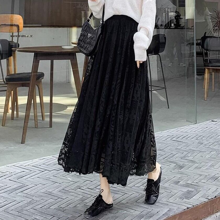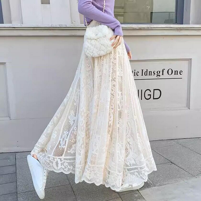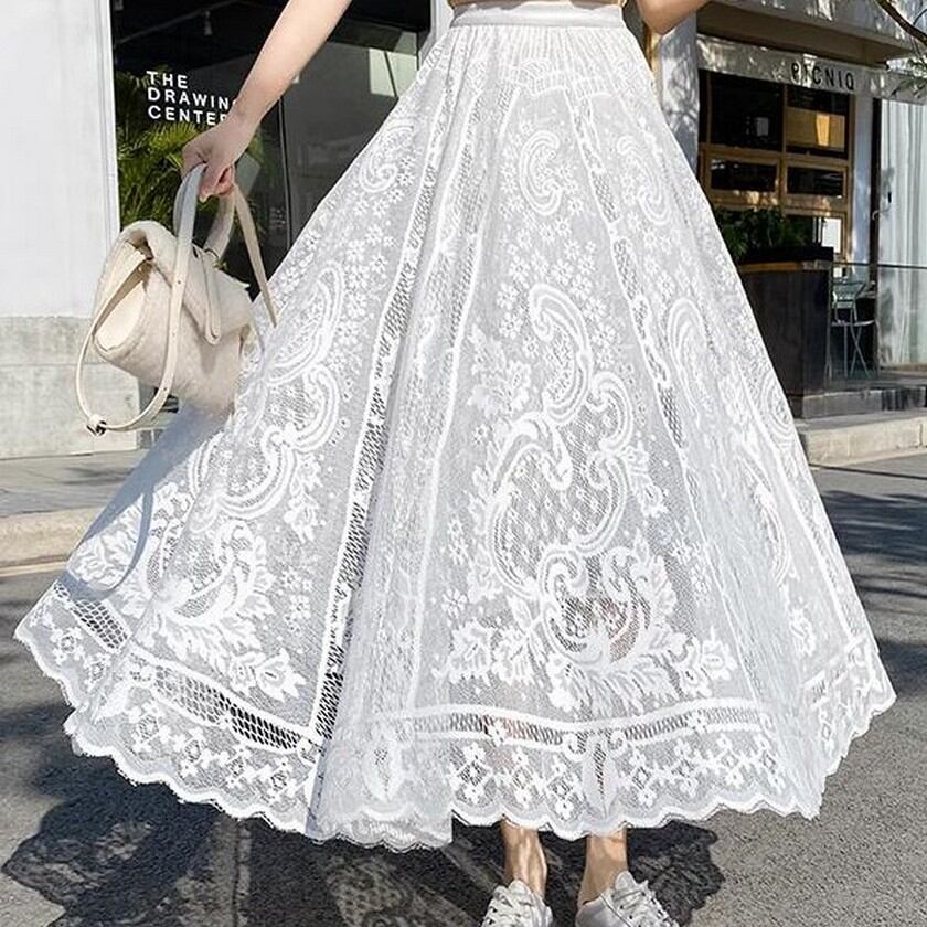 歩く度にエレガントな風が吹くレーススカート✨