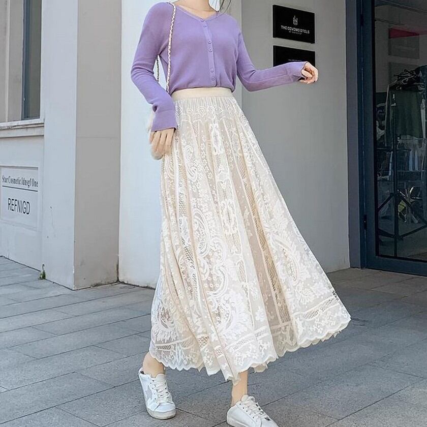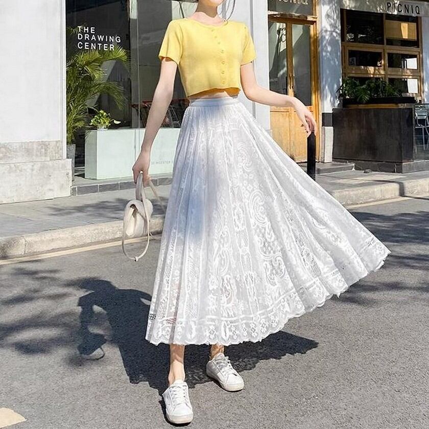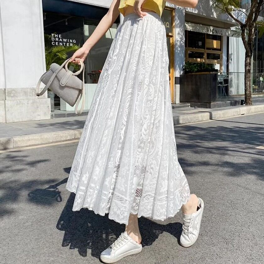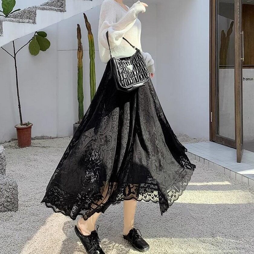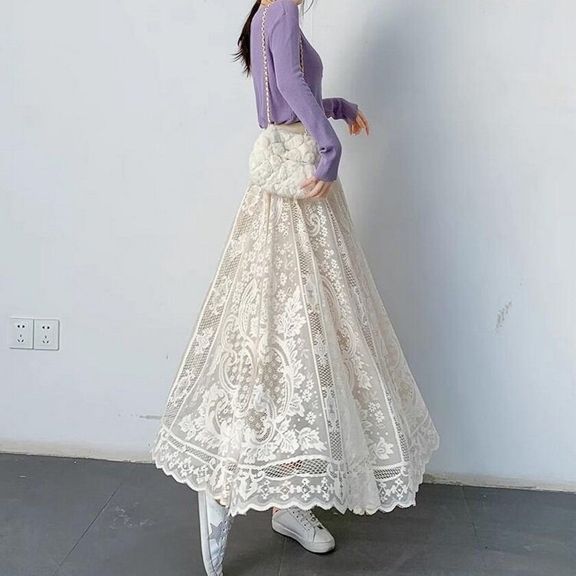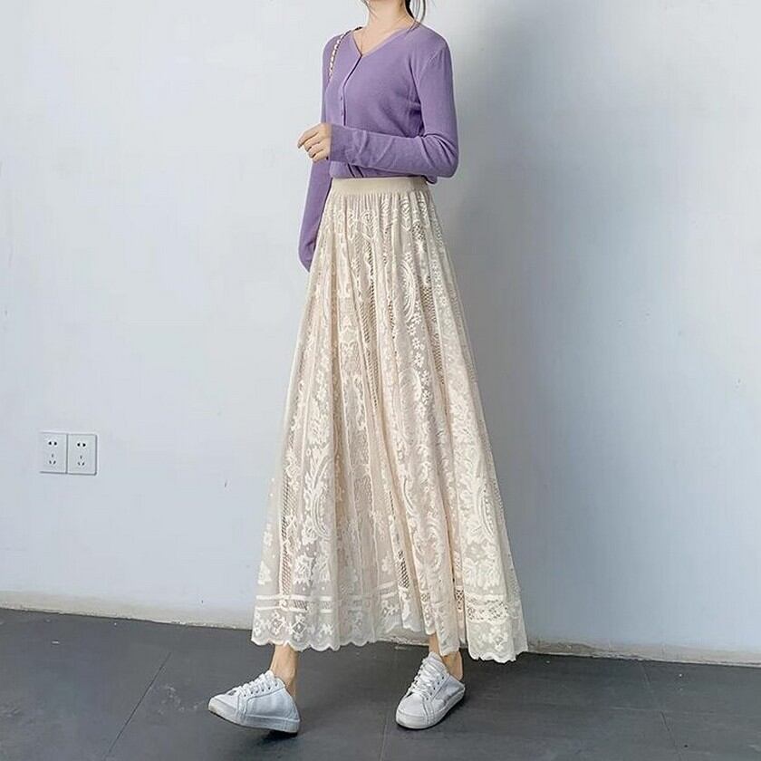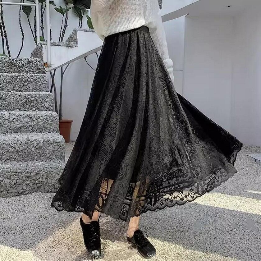歩く度にエレガントな風が吹くレーススカート✨
