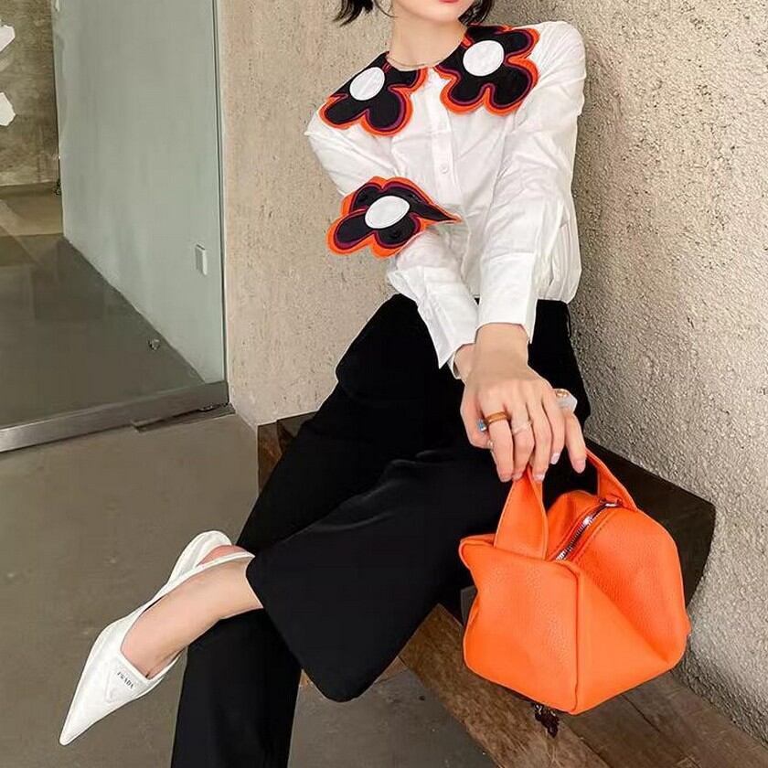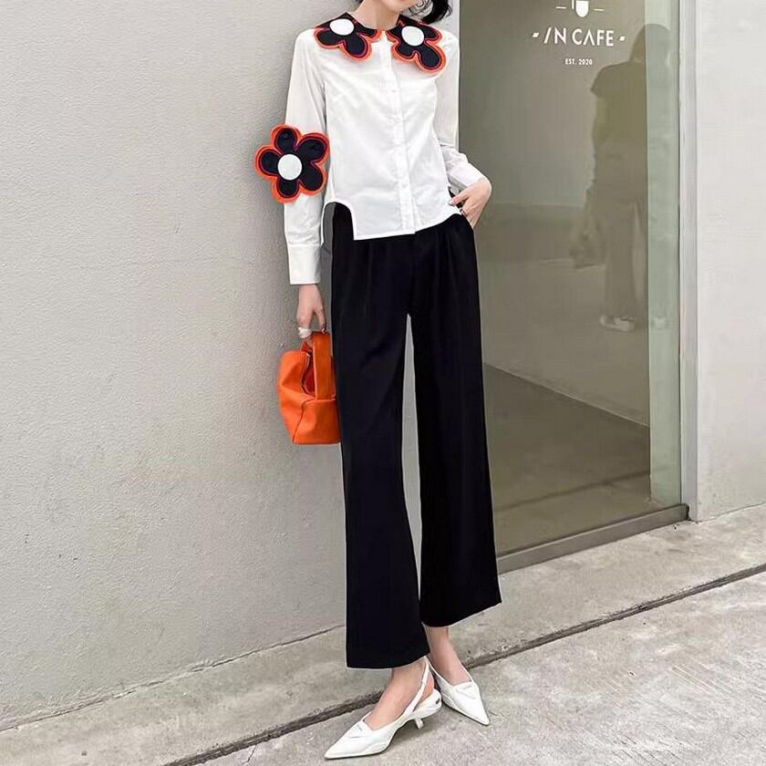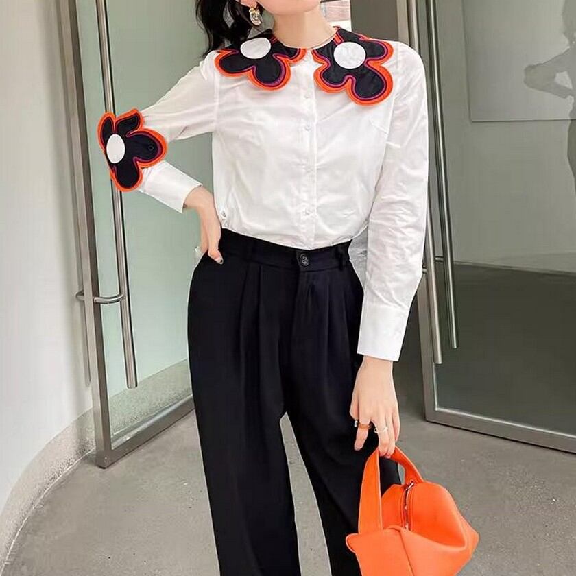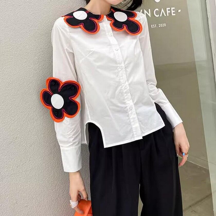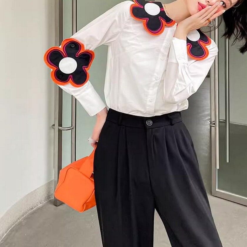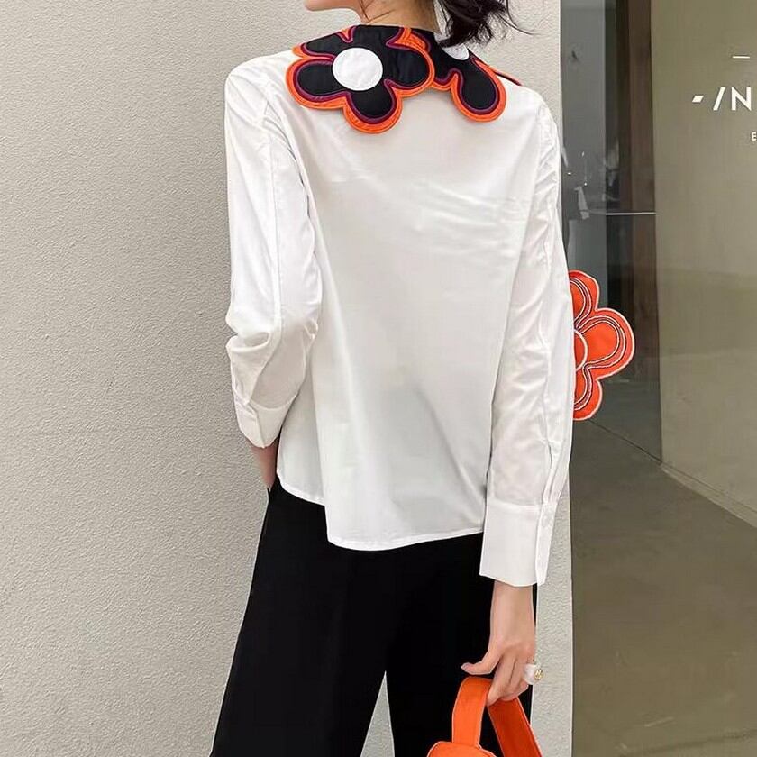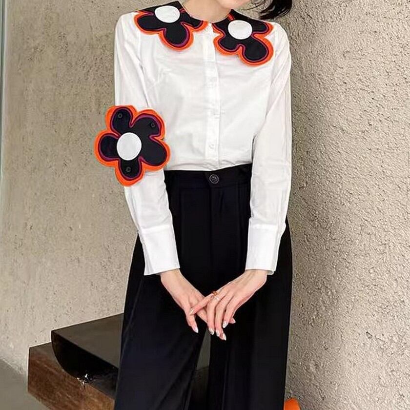 存在感抜群♪大きな花がついたスリムシャツ✨