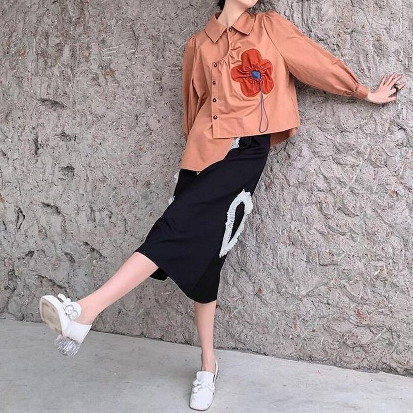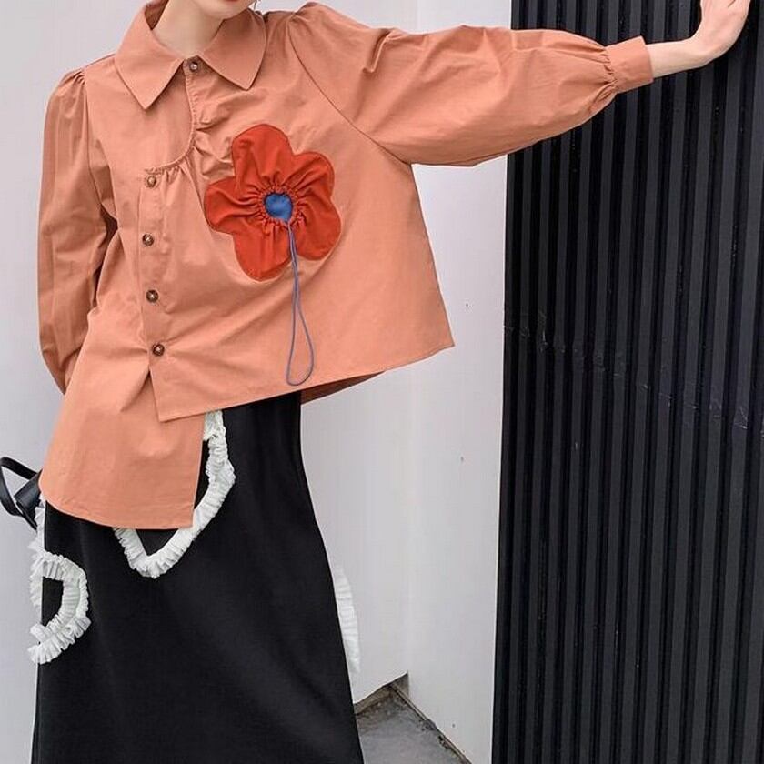 大きな可愛い花がアクセントのアシンメトリートップス✨