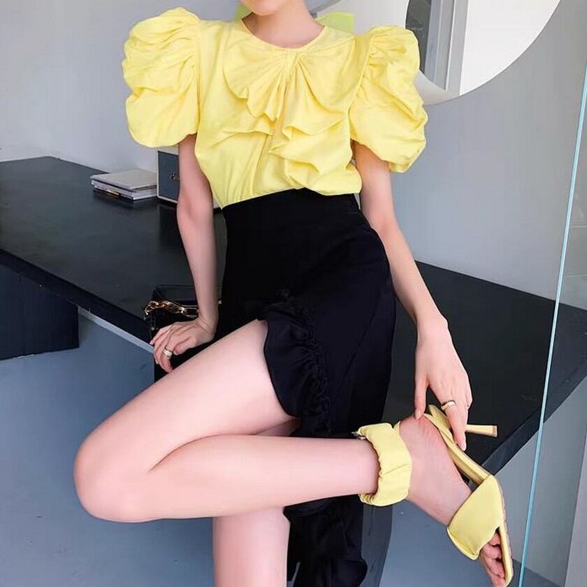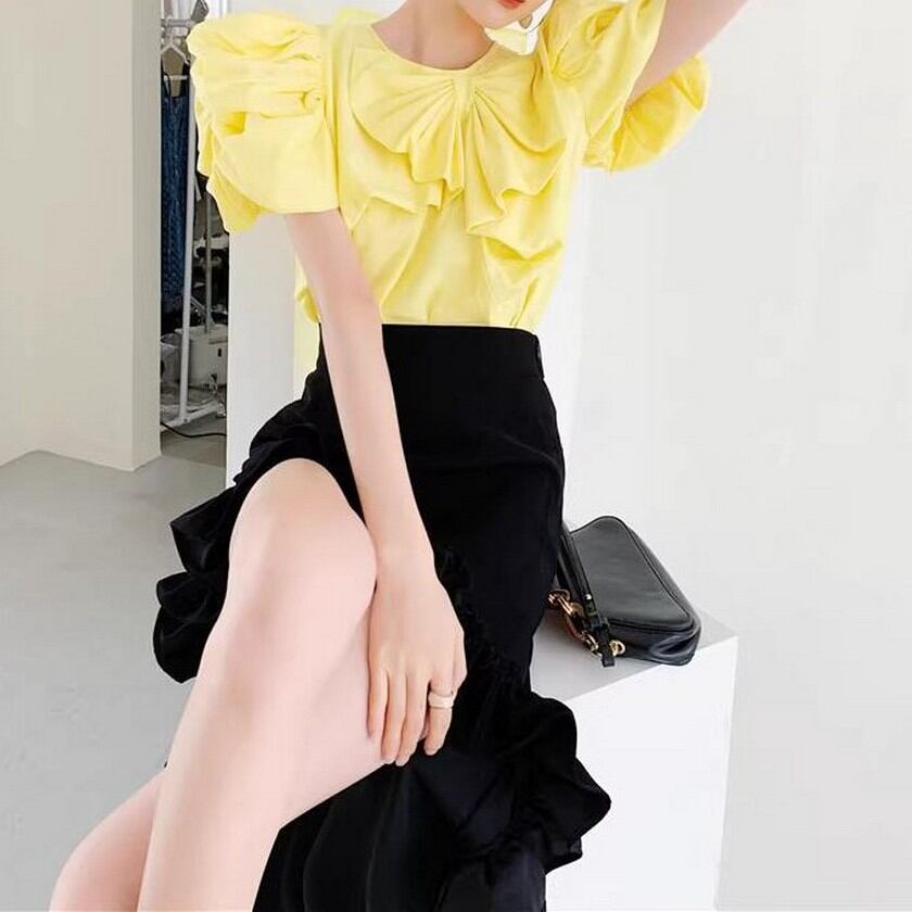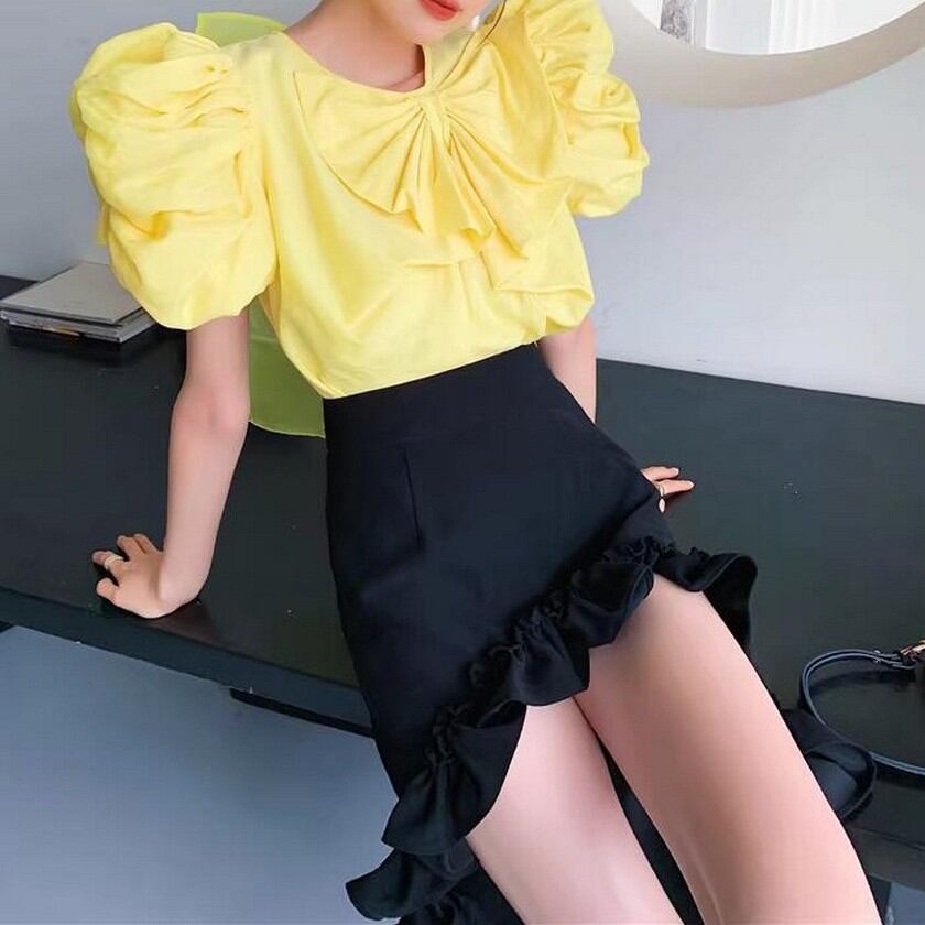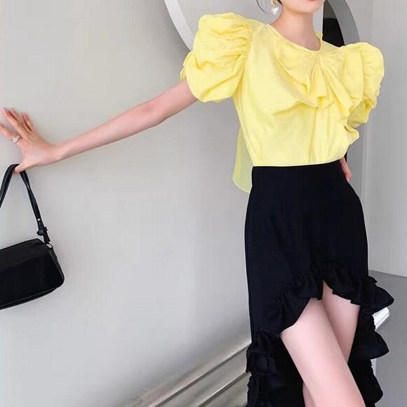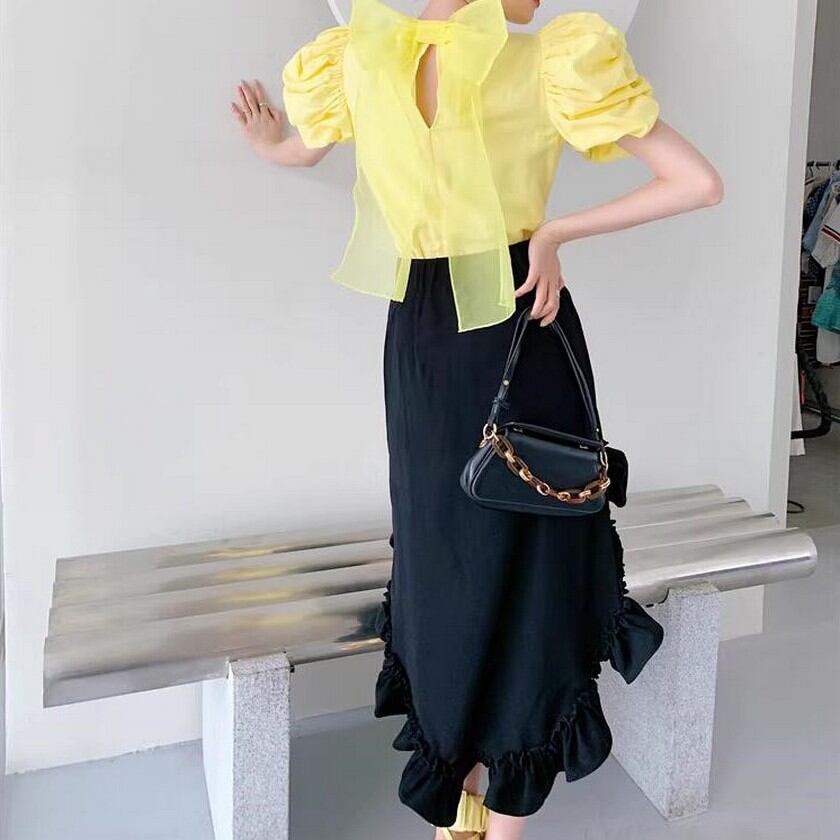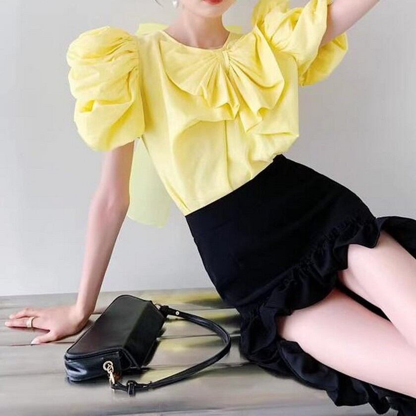 princess puff sleeves and cute ribbon shirt 0227