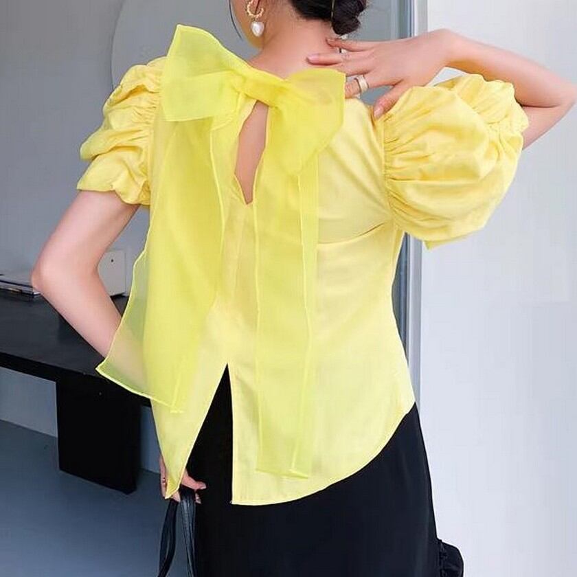 ふんわりパフスリーブにバックリボンが可愛いブラウス✨