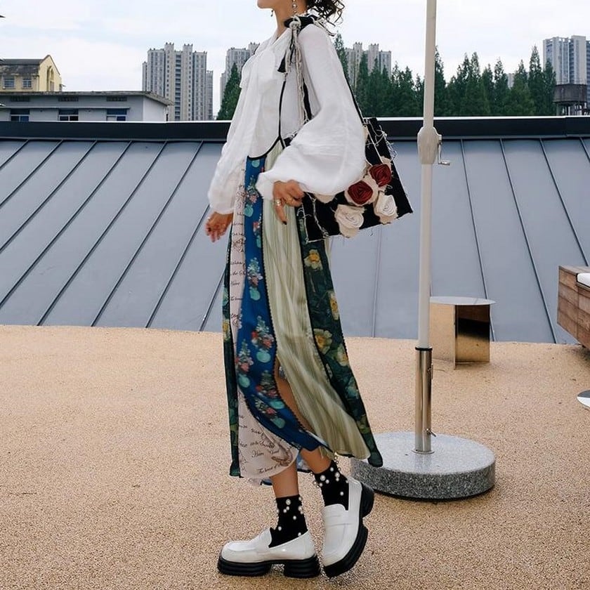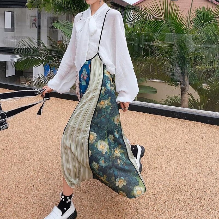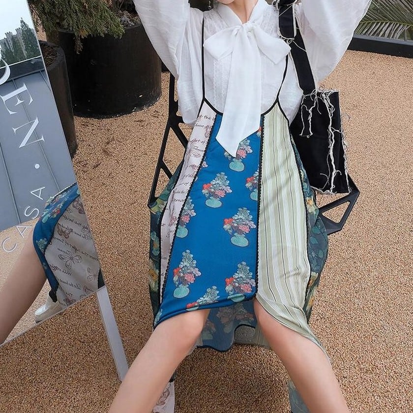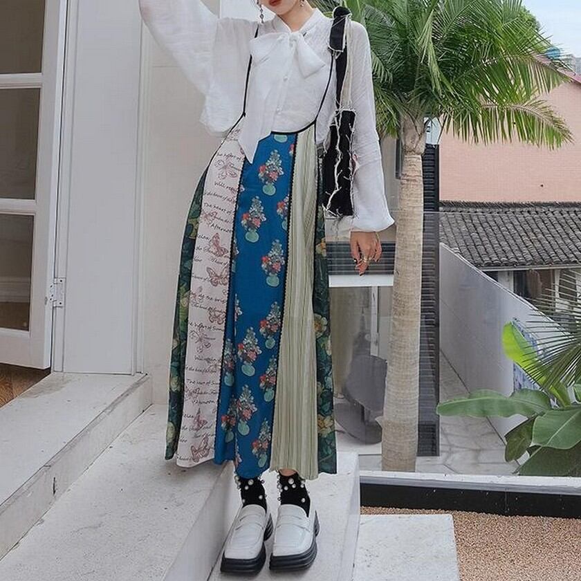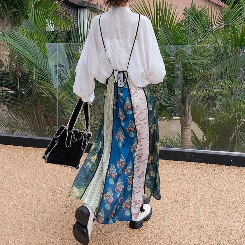 floral suspender patchwork style skirt 0247