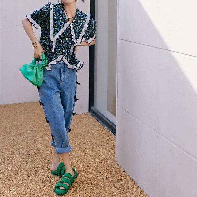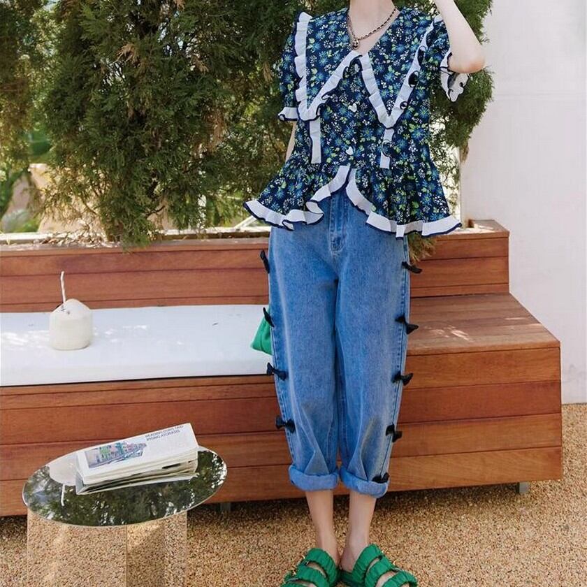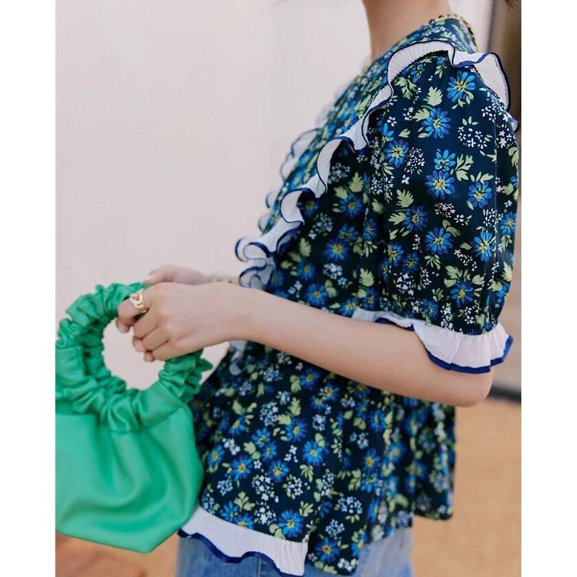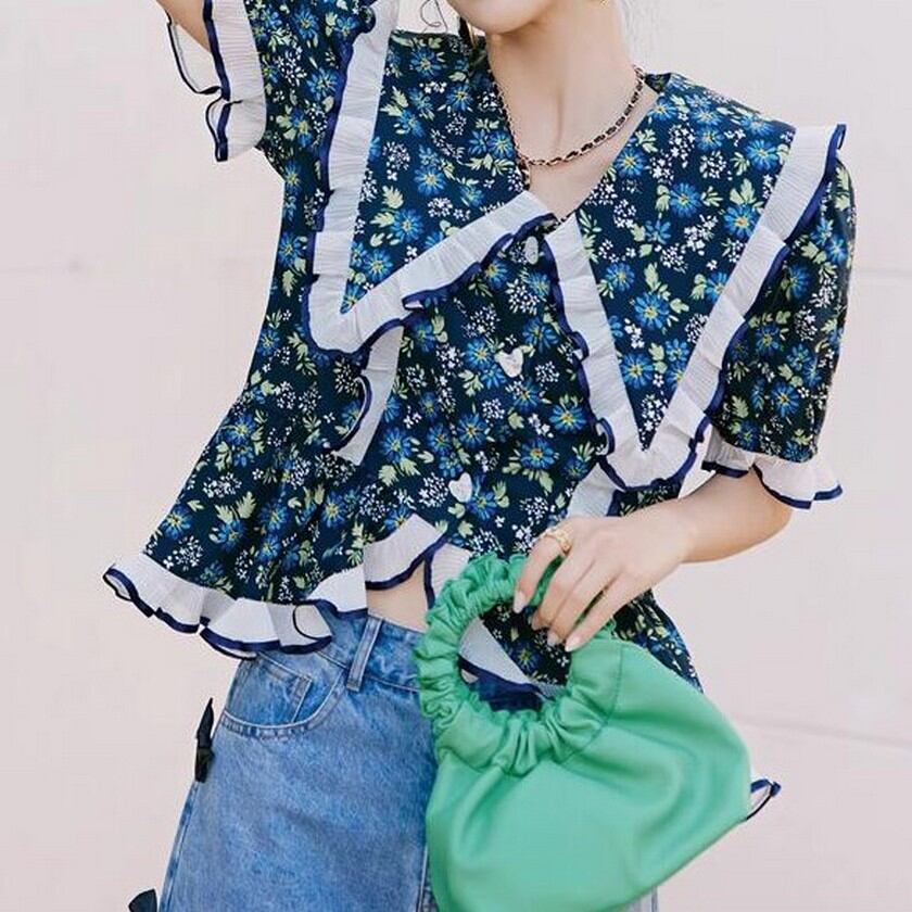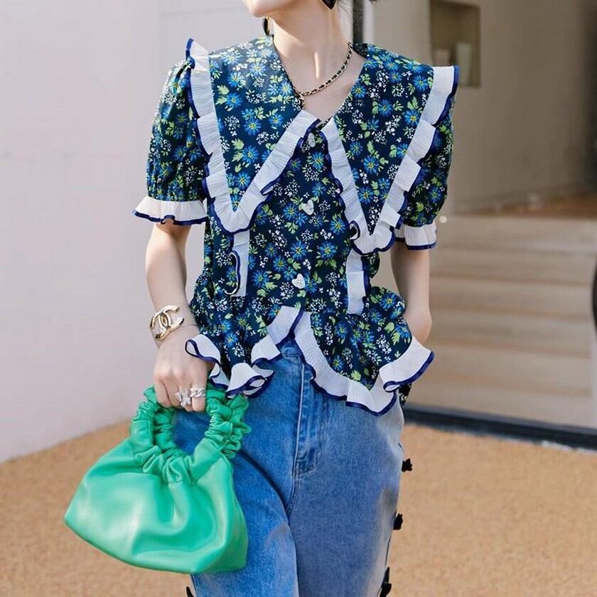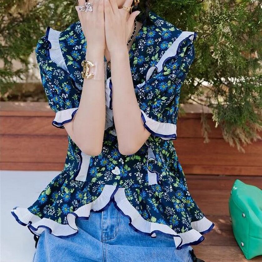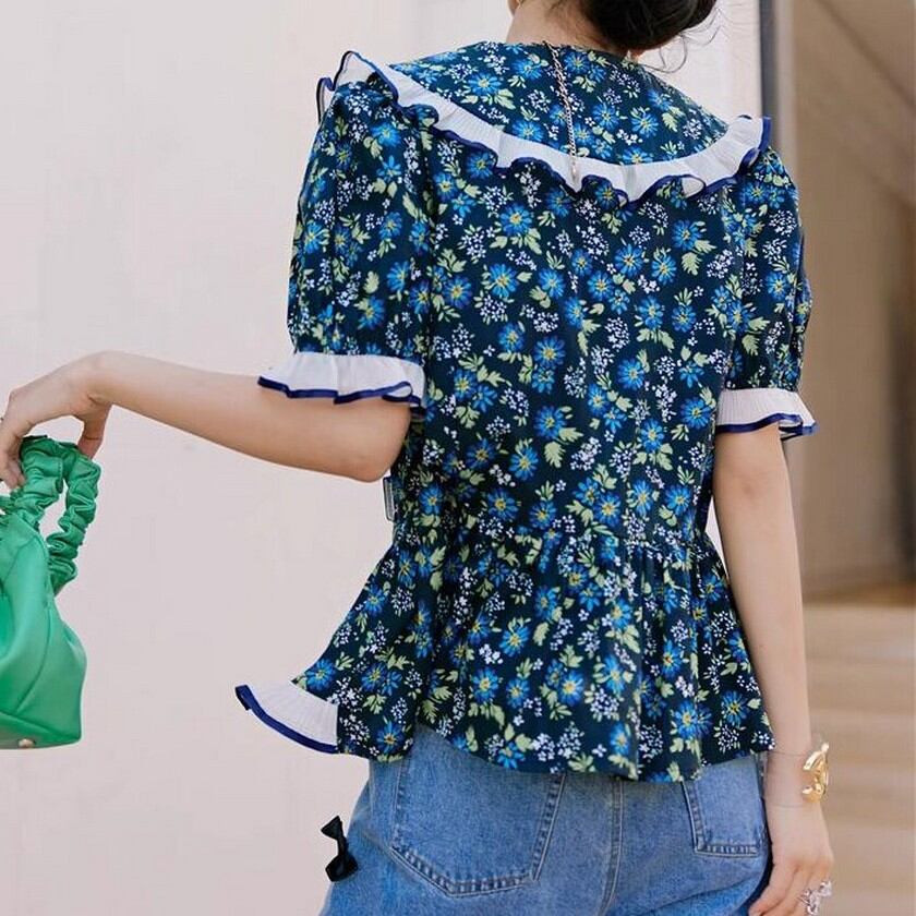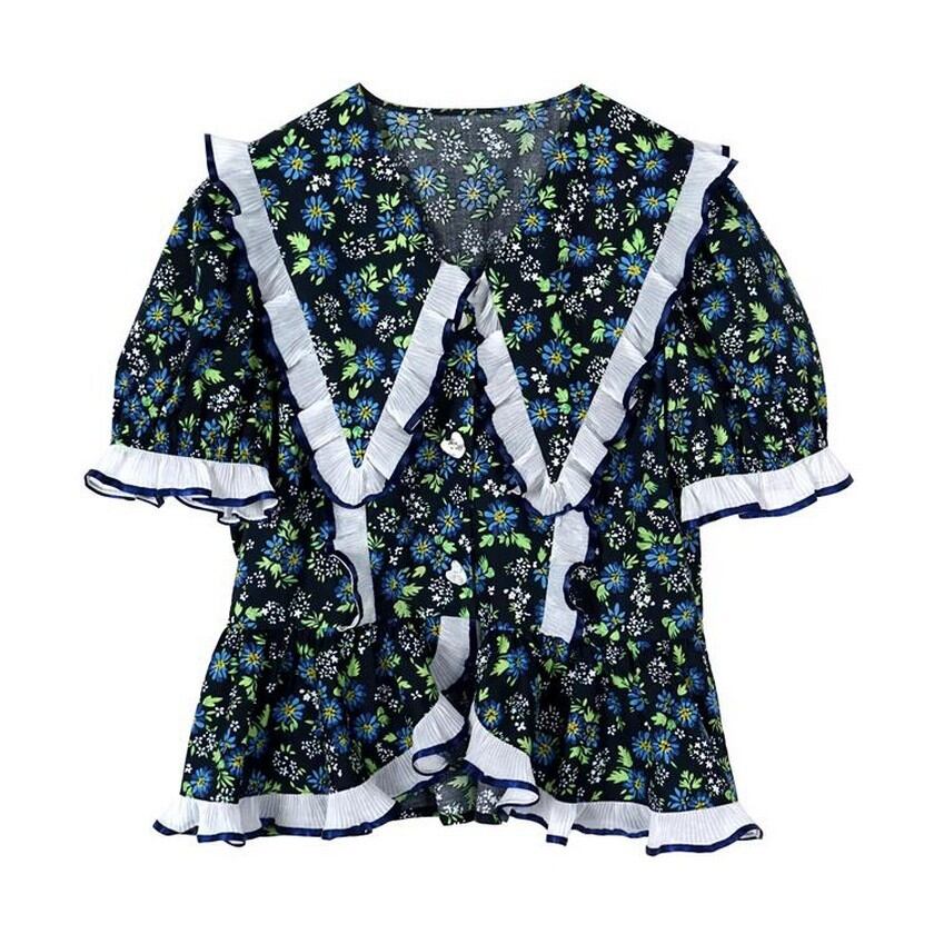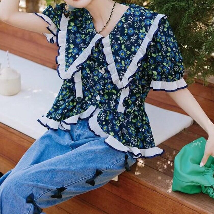 girly cute ruffle floral tops 0230