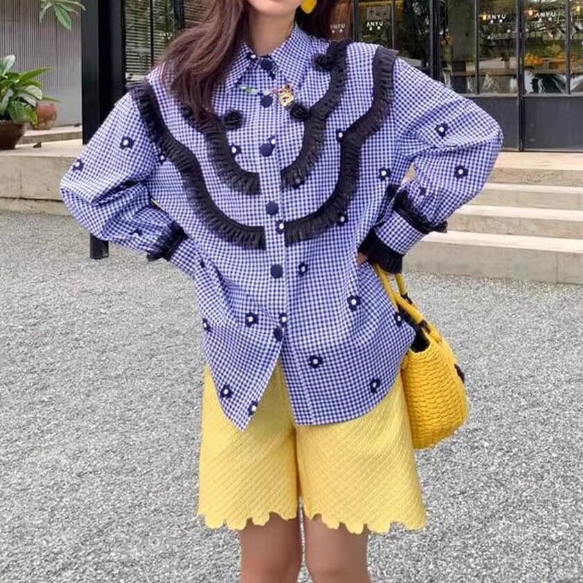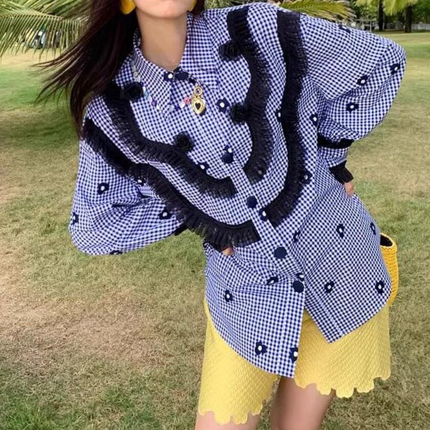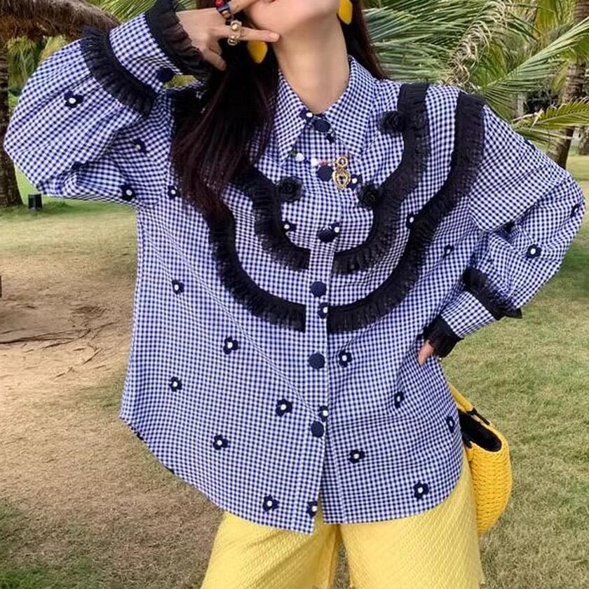 可愛い花柄にレトロガーリーな雰囲気のレースのおしゃれなブラウス✨