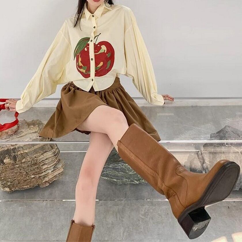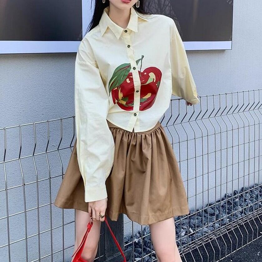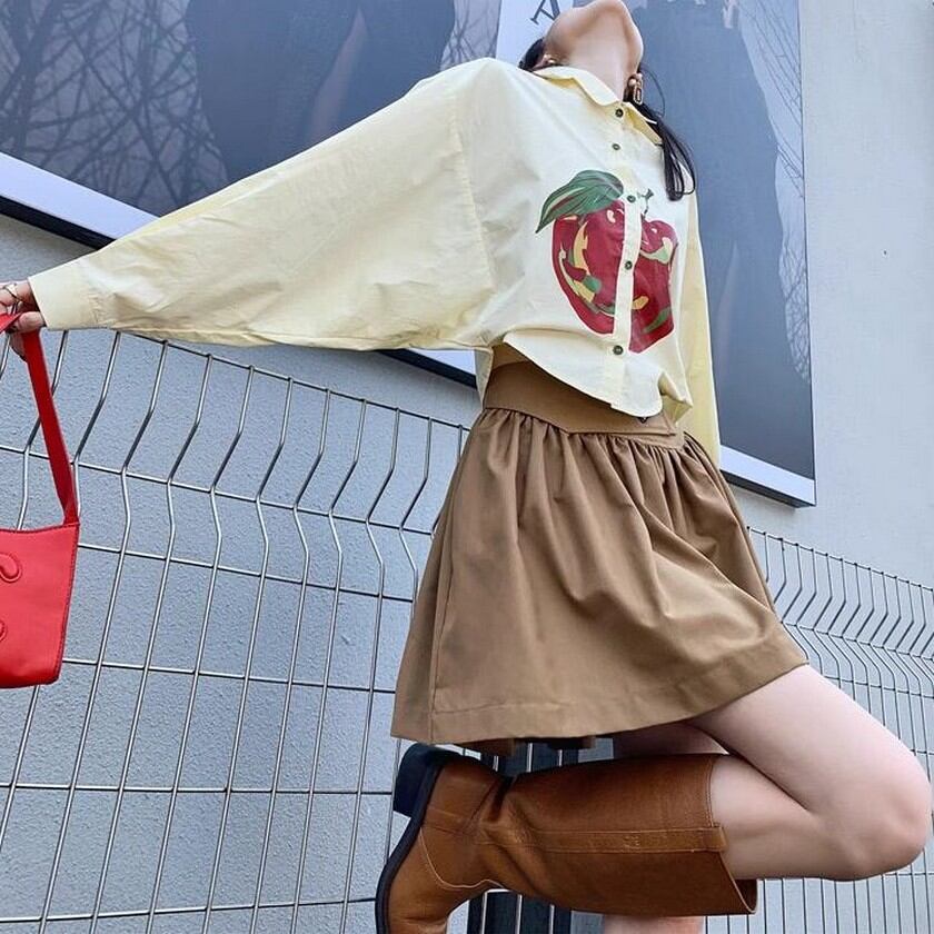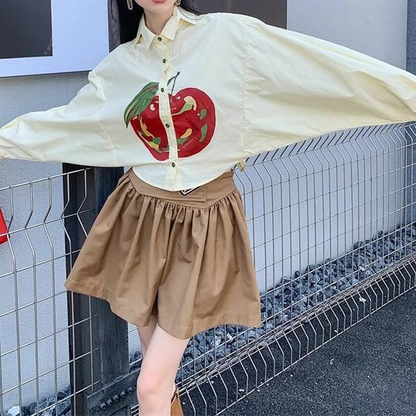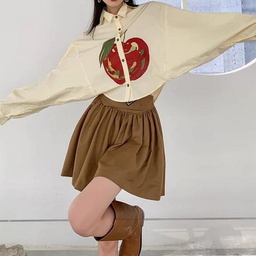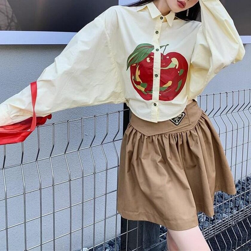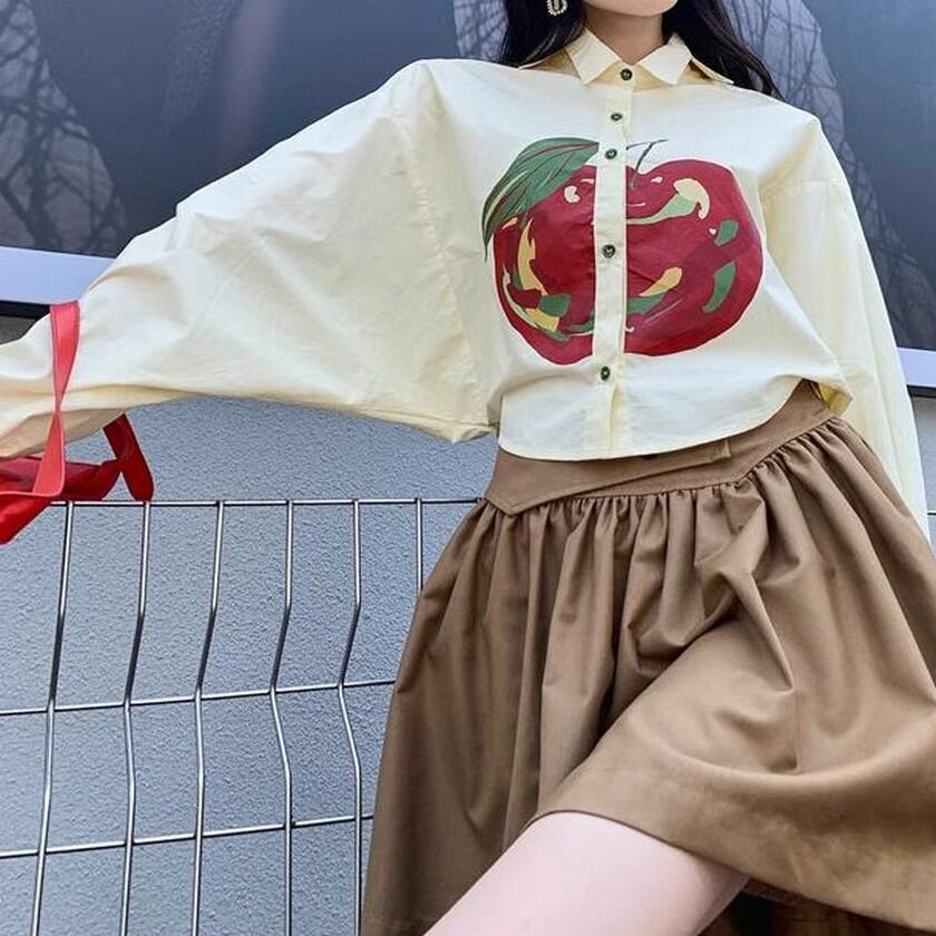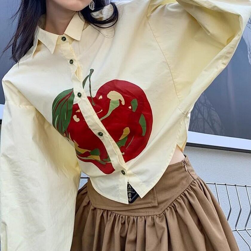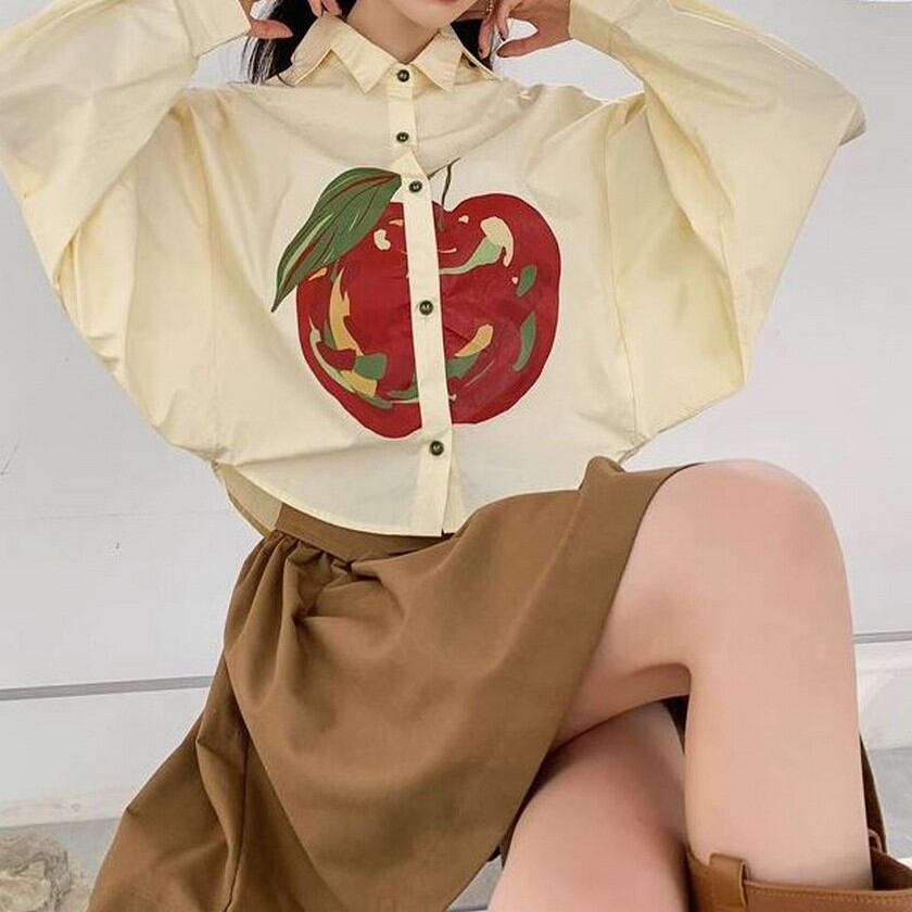 おしゃれレトロなアップルがプリントされたブラウス✨