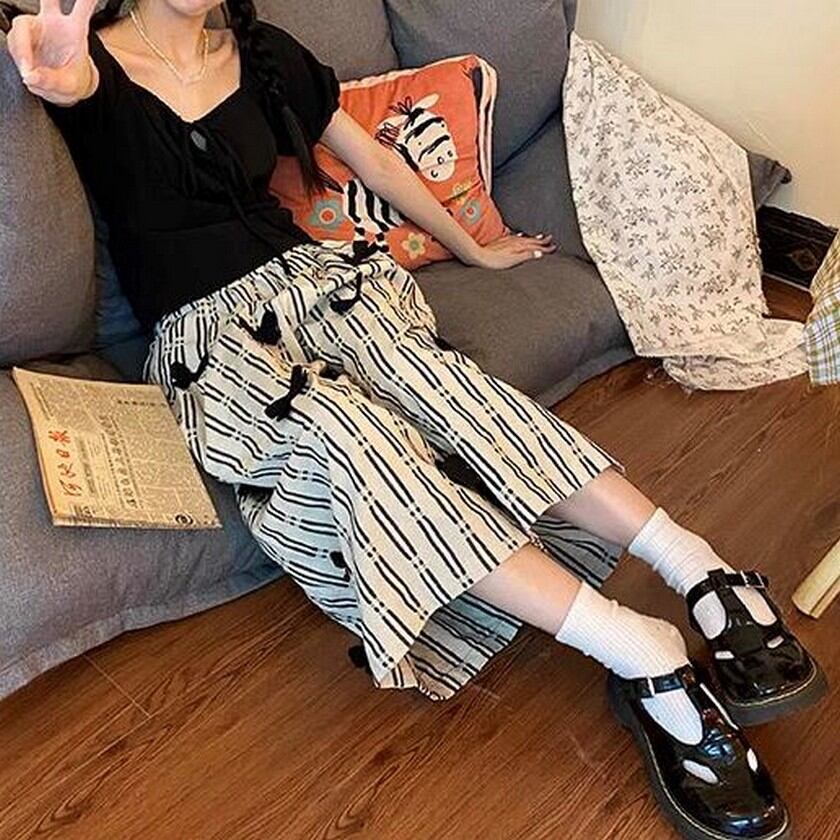 cute ribbon striped casual pants 0257