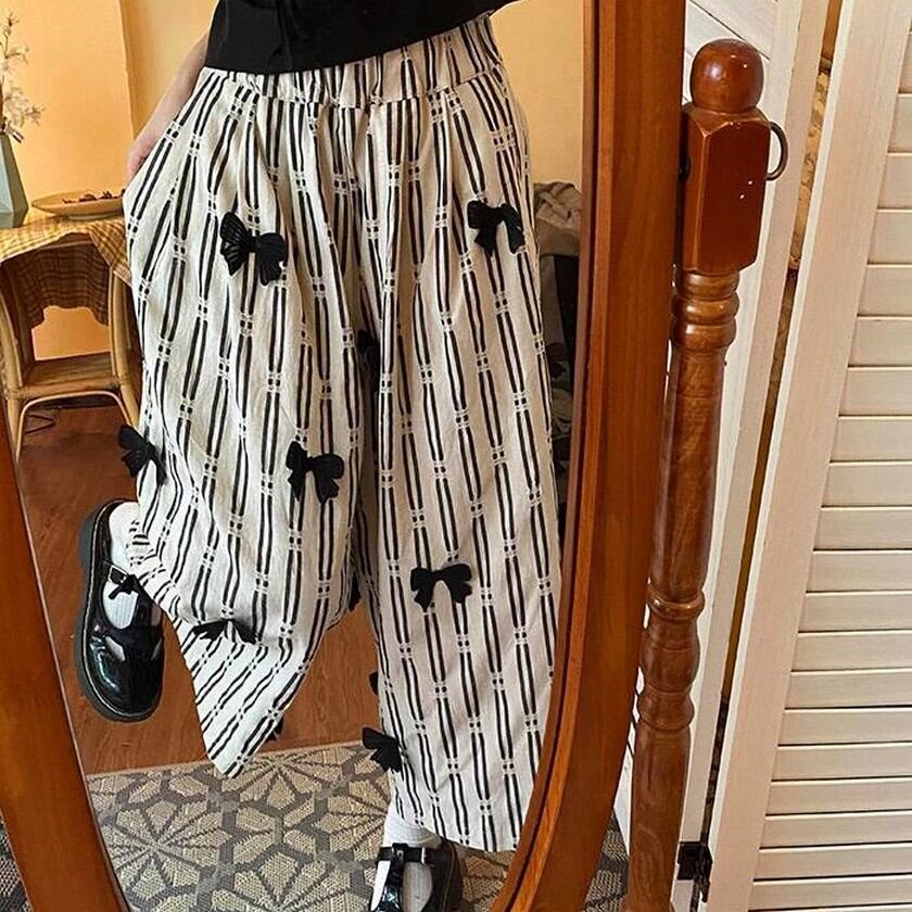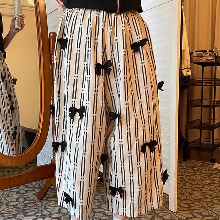 リボンがたくさいついた可愛らしいストライプカジュアルパンツ✨