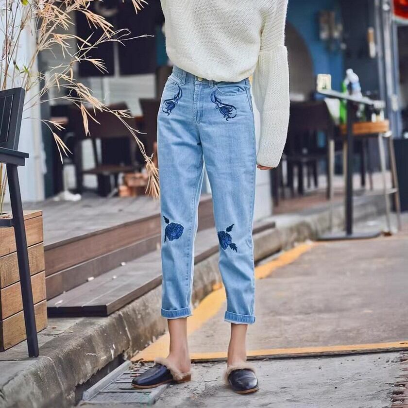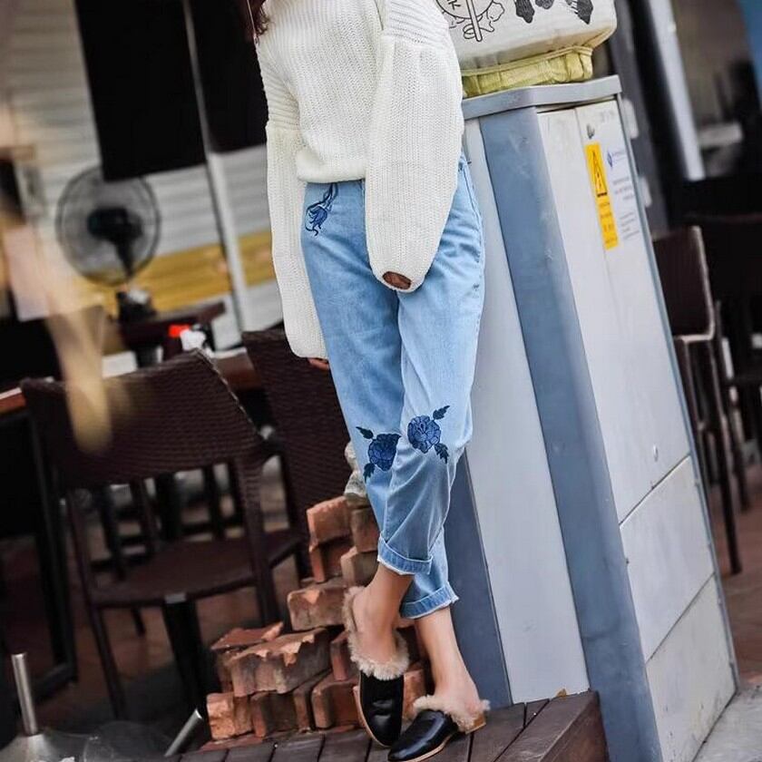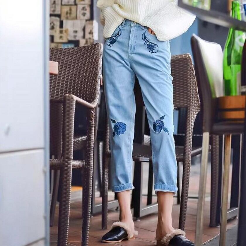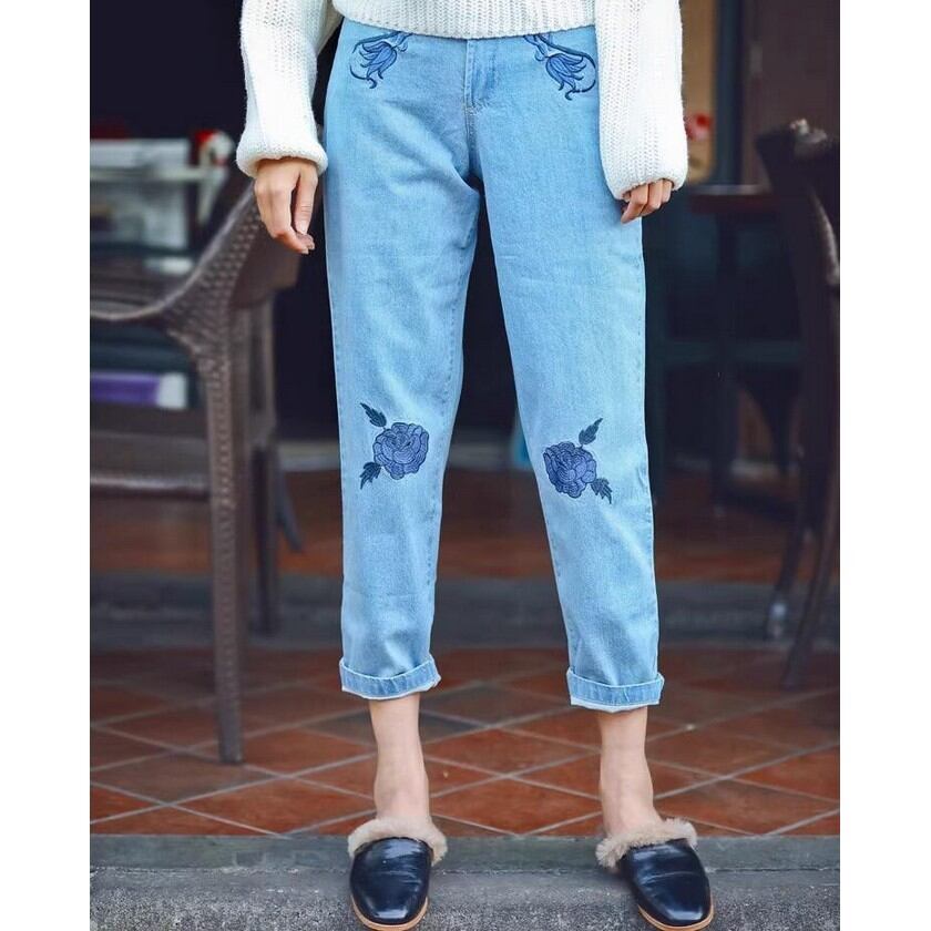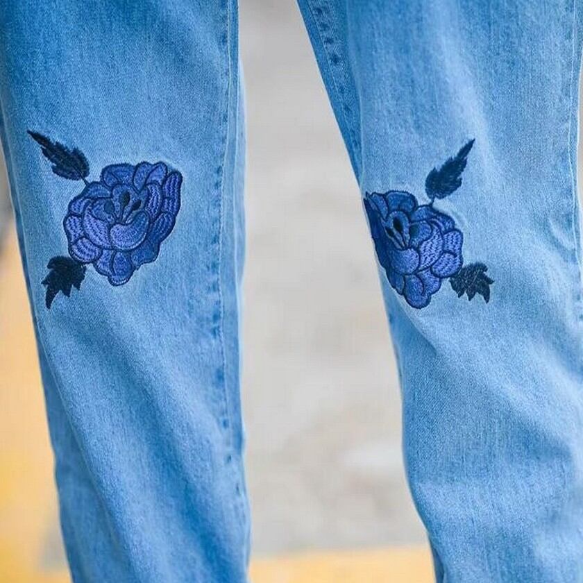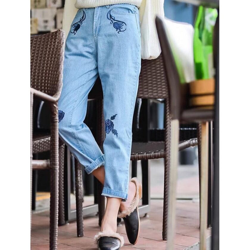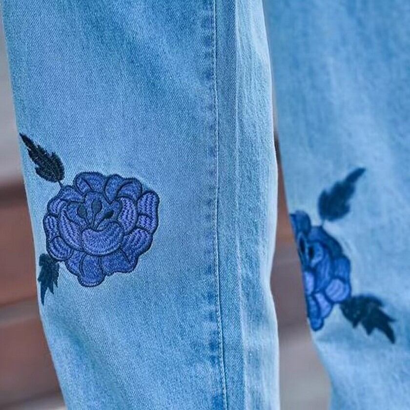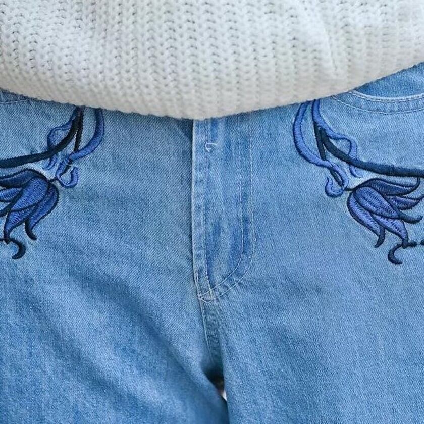 上品な薔薇の刺繍があるおしゃれなロールデニムパンツ✨