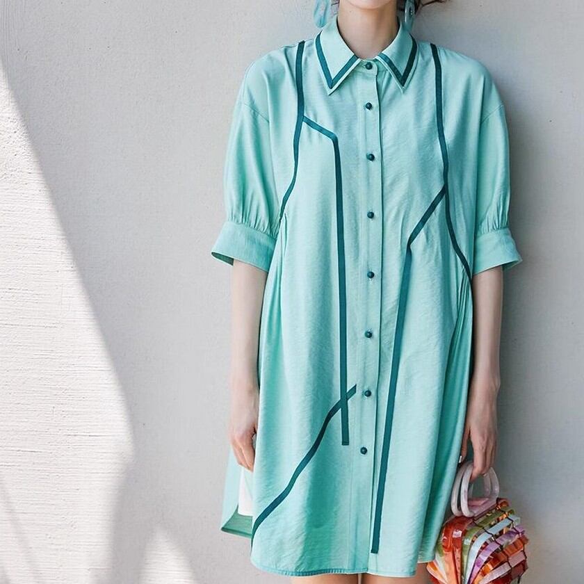 爽やかなミントアイスカラーのシャツワンピース✨