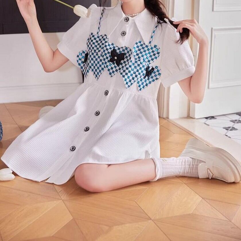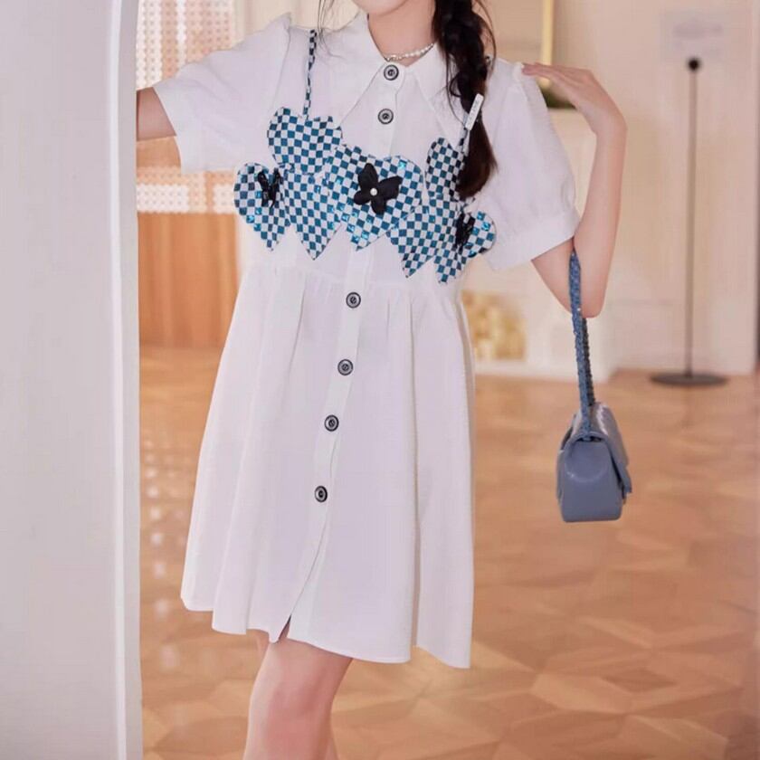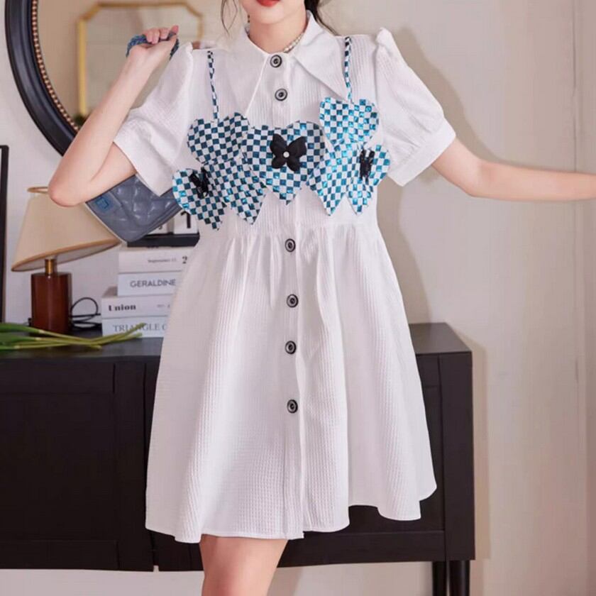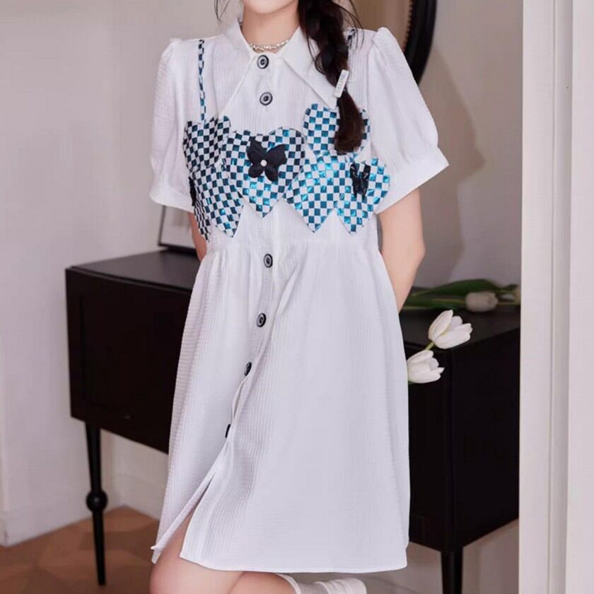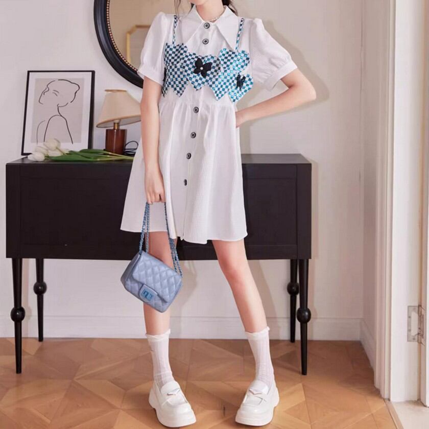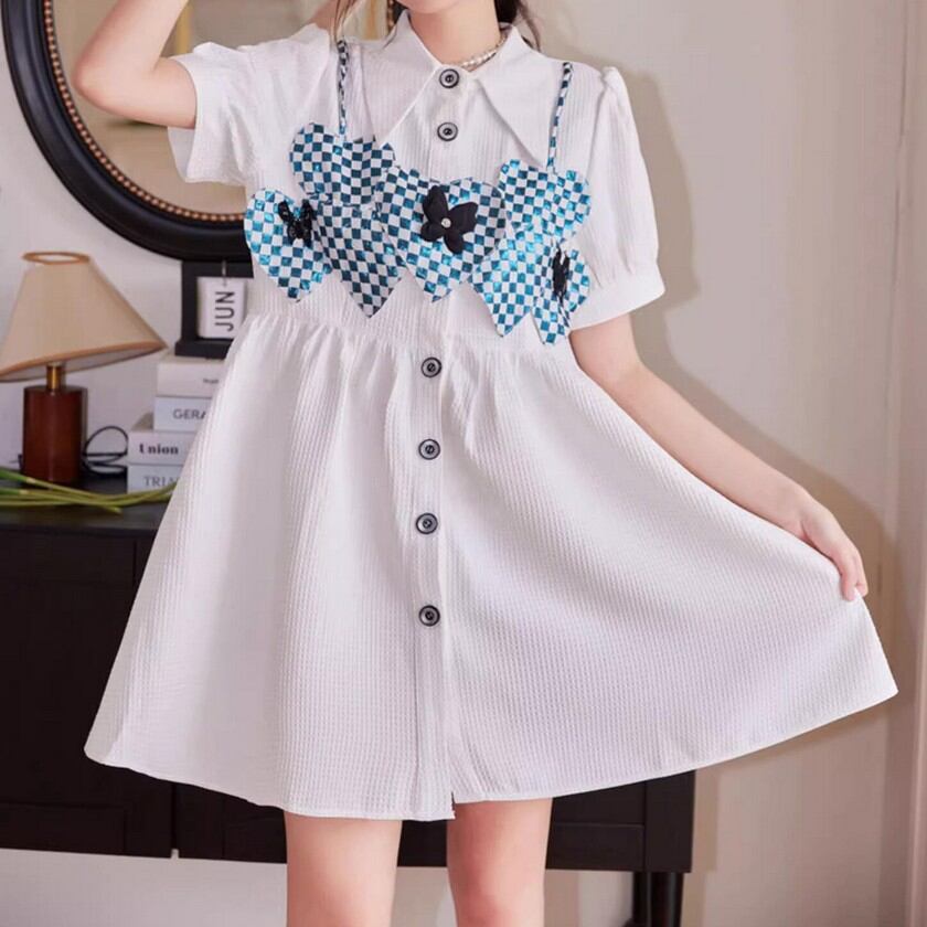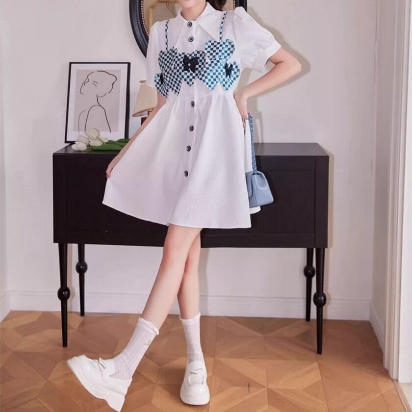 可愛いらしいハートマークをつなげたベストとレイヤード風のおしゃれなワンピース✨