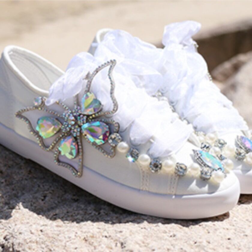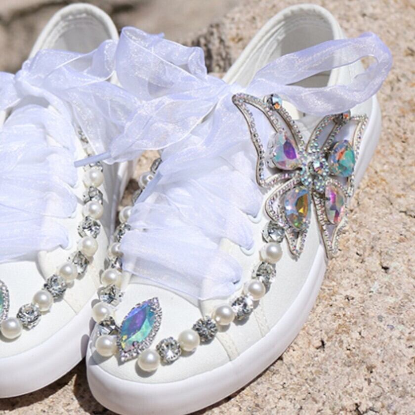 存在感抜群♪キラキラの蝶々がとまっているおしゃれなスニーカー✨