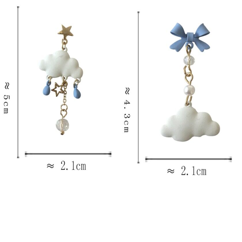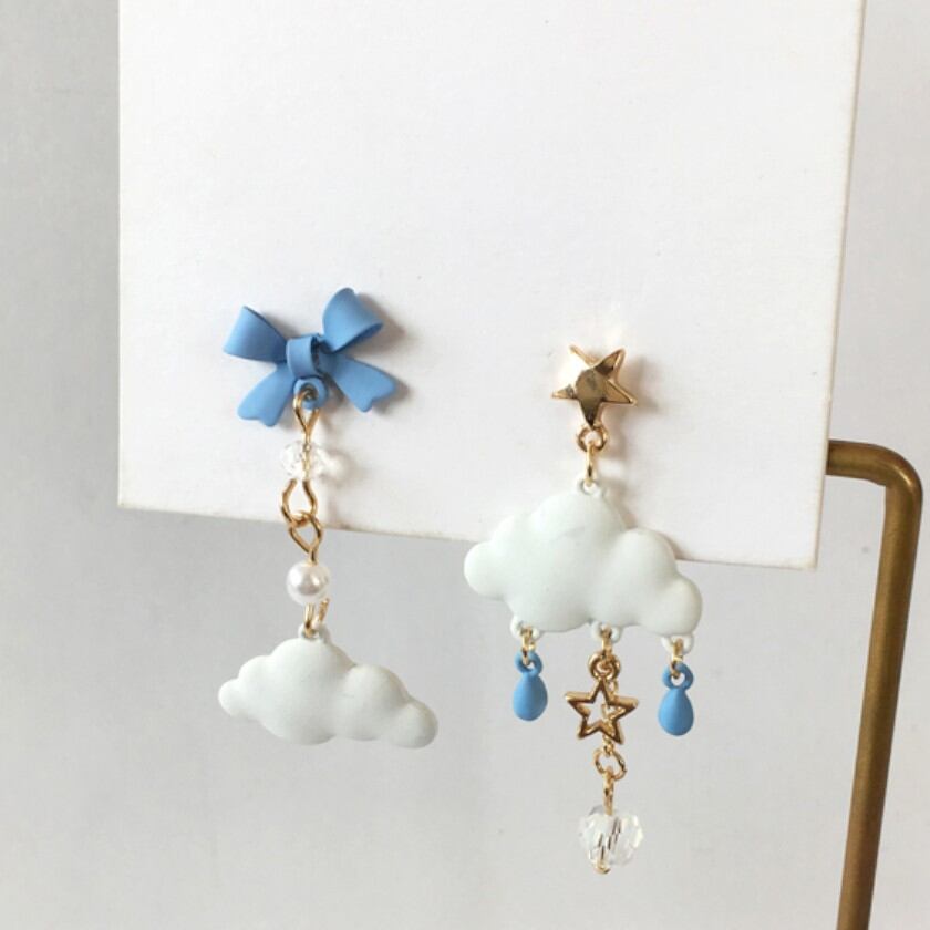 sweet cloud and star ribbon asymmetrical earrings (ピアス) 0066
