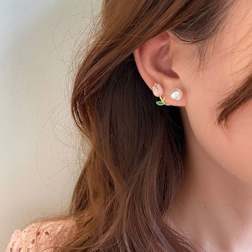 可愛らしいアクセントに♡ピンクチューリップピアス✨