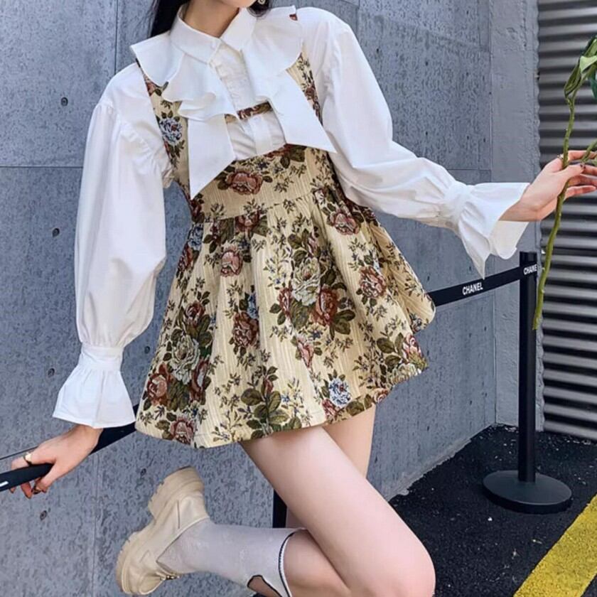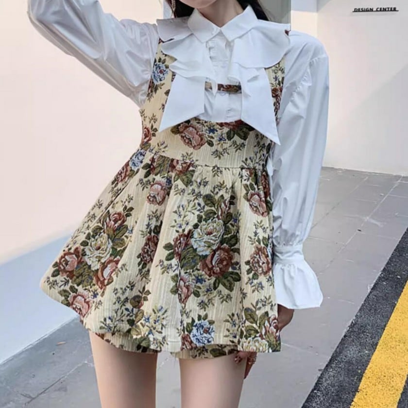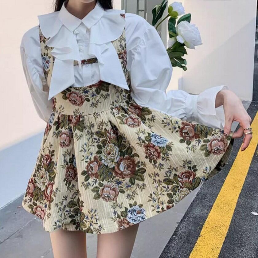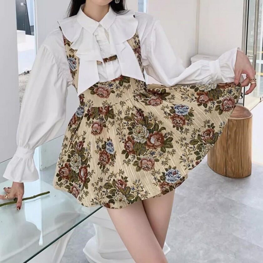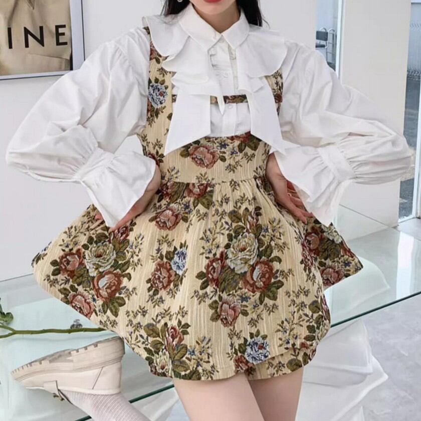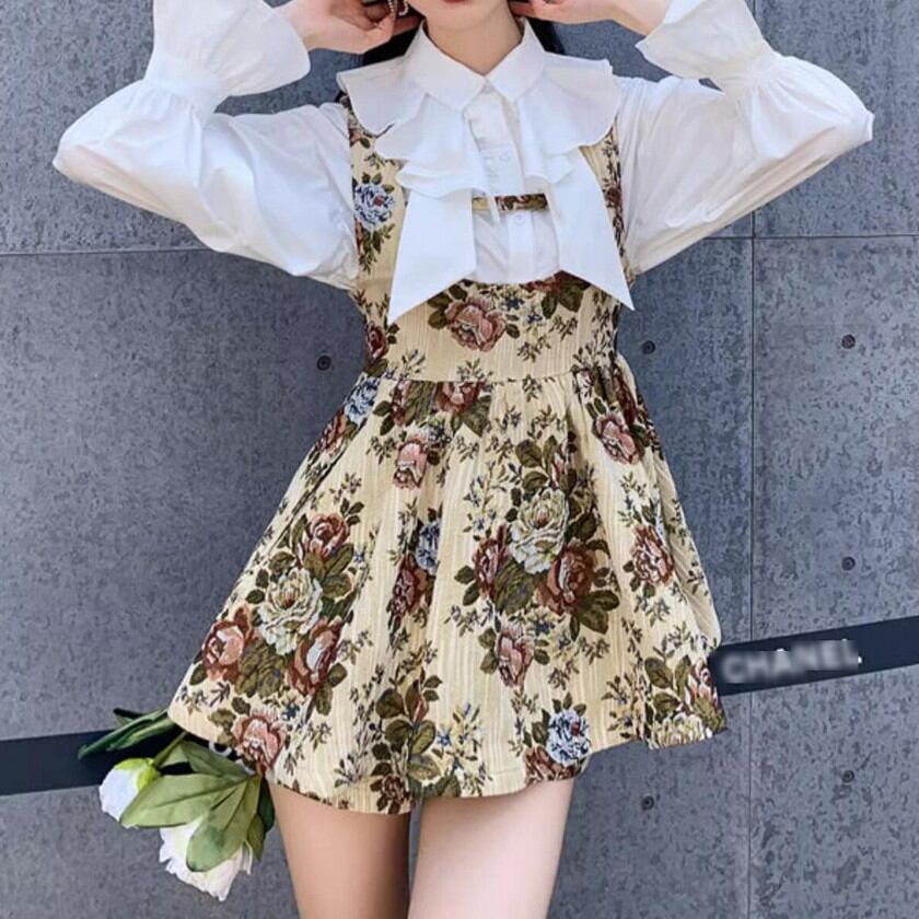 retro elegant floral suspender skirt 0354