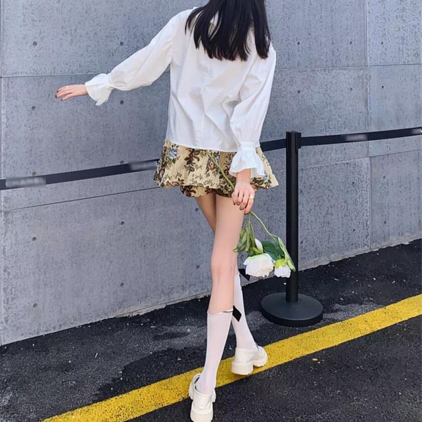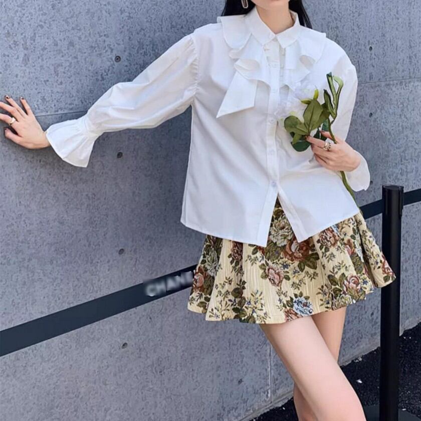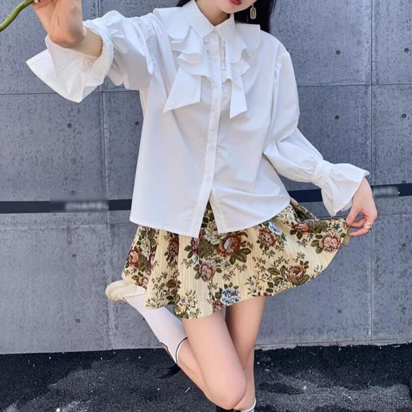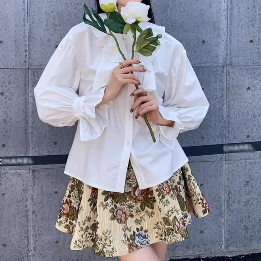 retro elegant ruffled lantern sleeve shirt 0316